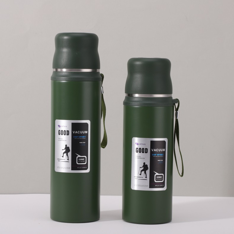 국경 간 304 이중층 스테인레스 스틸 절연 컵 야외 휴대용 등산 워터 컵 운반 로프가있는 대용량 스포츠 물병
