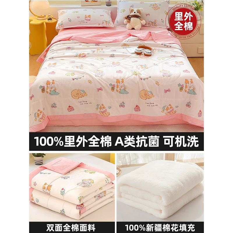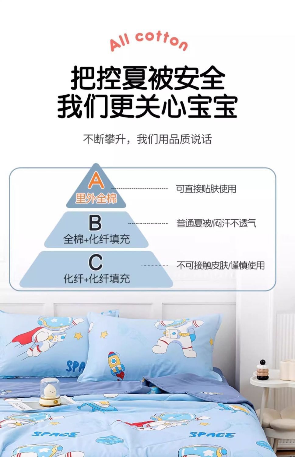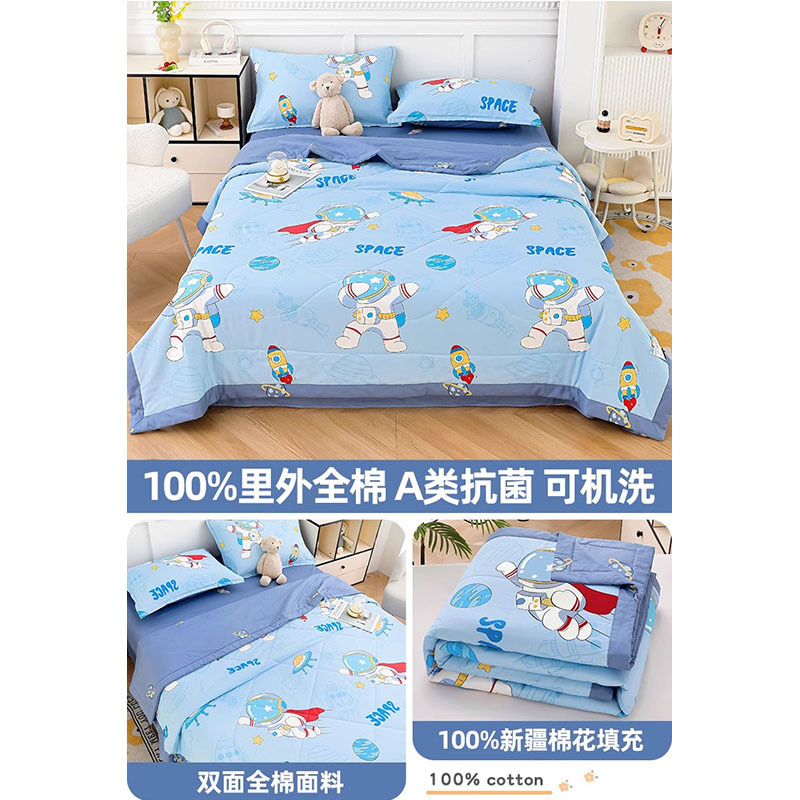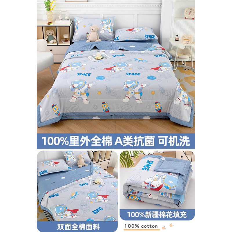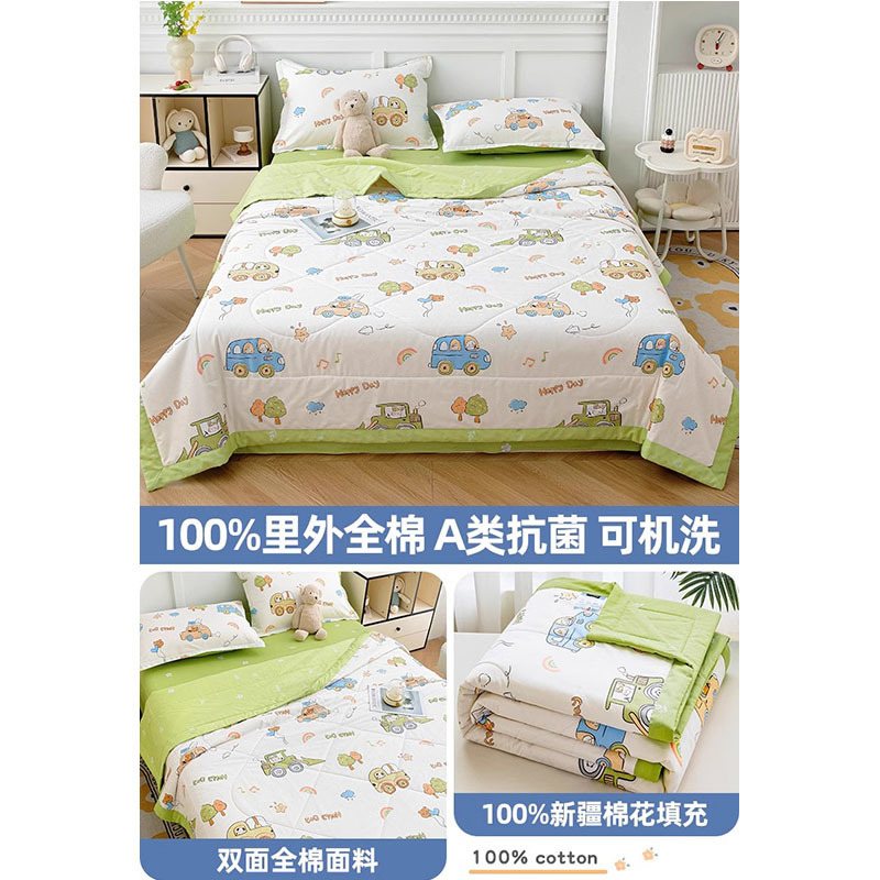 100% 면 여름 이불 순면 에어컨 이불 여름 이불 어린이 소년 유치원 기계 세탁 가능 여름 얇은 이불