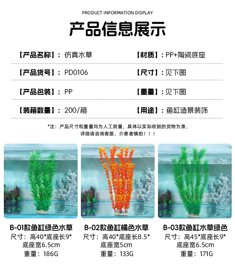 • B-01 수조 녹색 수초 (높이 40cm, 밑면 길이 9cm, 폭 6.5cm)