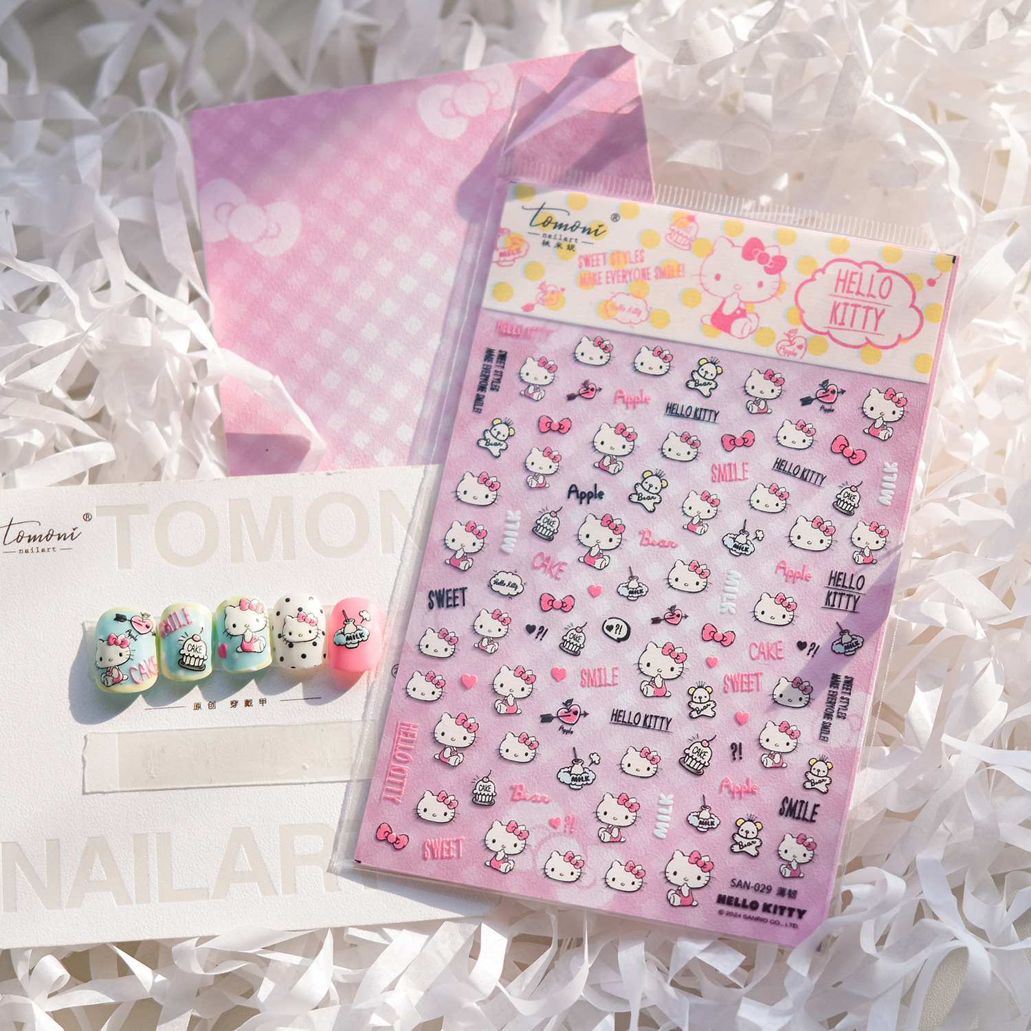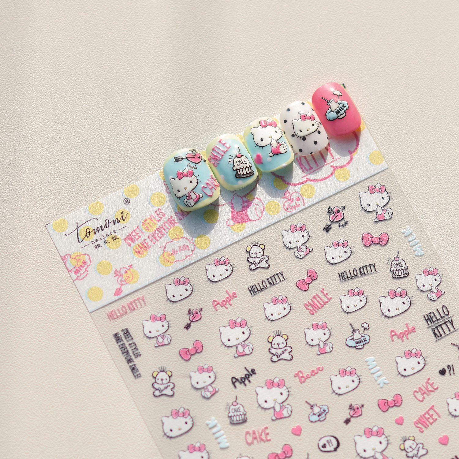 헬로 키티 고양이 네일 아트 스티커 봄과 여름 달콤한 파우더 소녀 귀여운 학생 어린이 만화 헬로 키티 네일 스티커스토어 가기