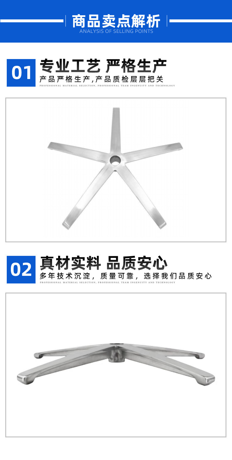 사무용 의자 부품 알루미늄 합금 다섯 갈래 다리 회전 의자 다섯 갈래 광택 의자 다리 가구 사장 의자 알루미늄 다리