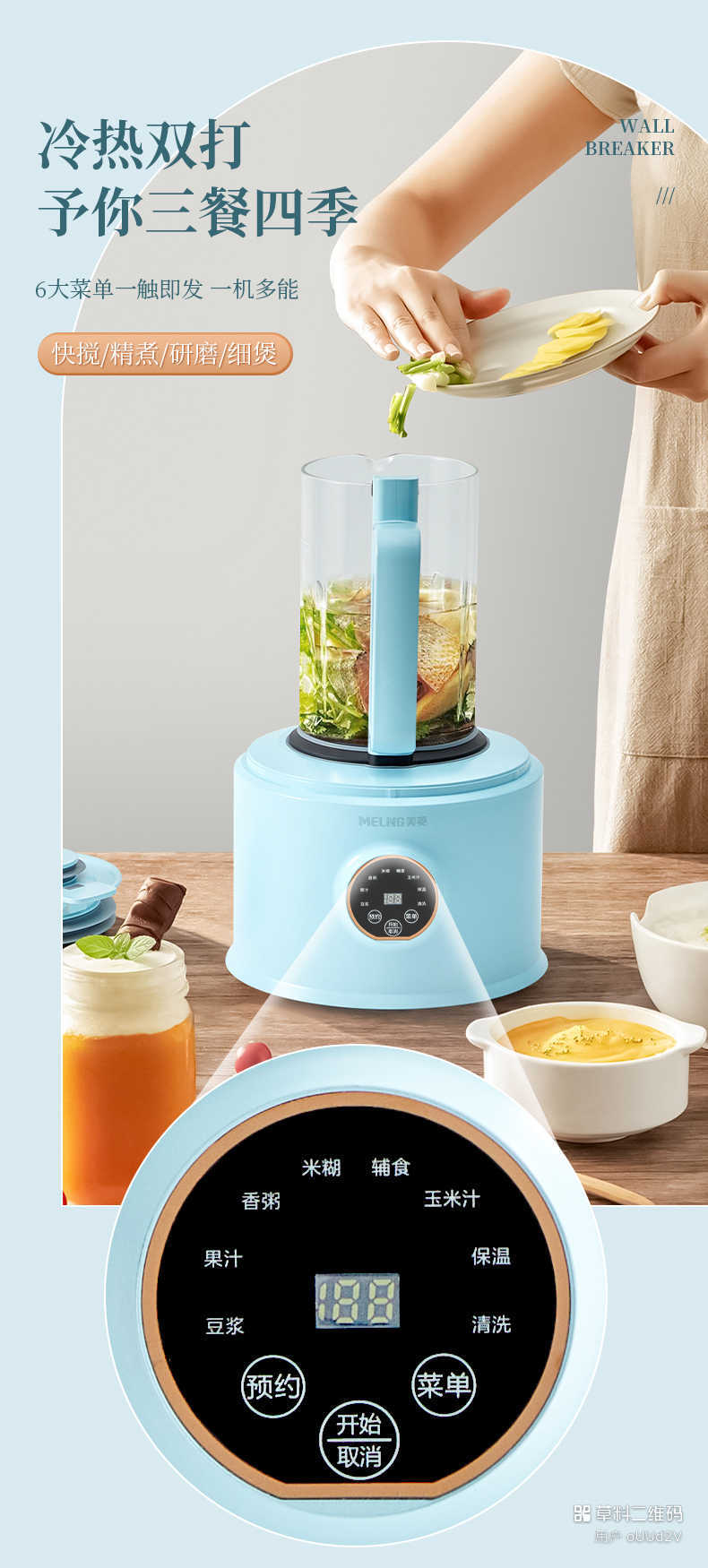 Meiling 자동 벽 파괴 기계 가정용 완전 자동 필터 프리 슬래그 프리 예약 다기능 요리 기계 두유 기계 주스 기계스토어 가기