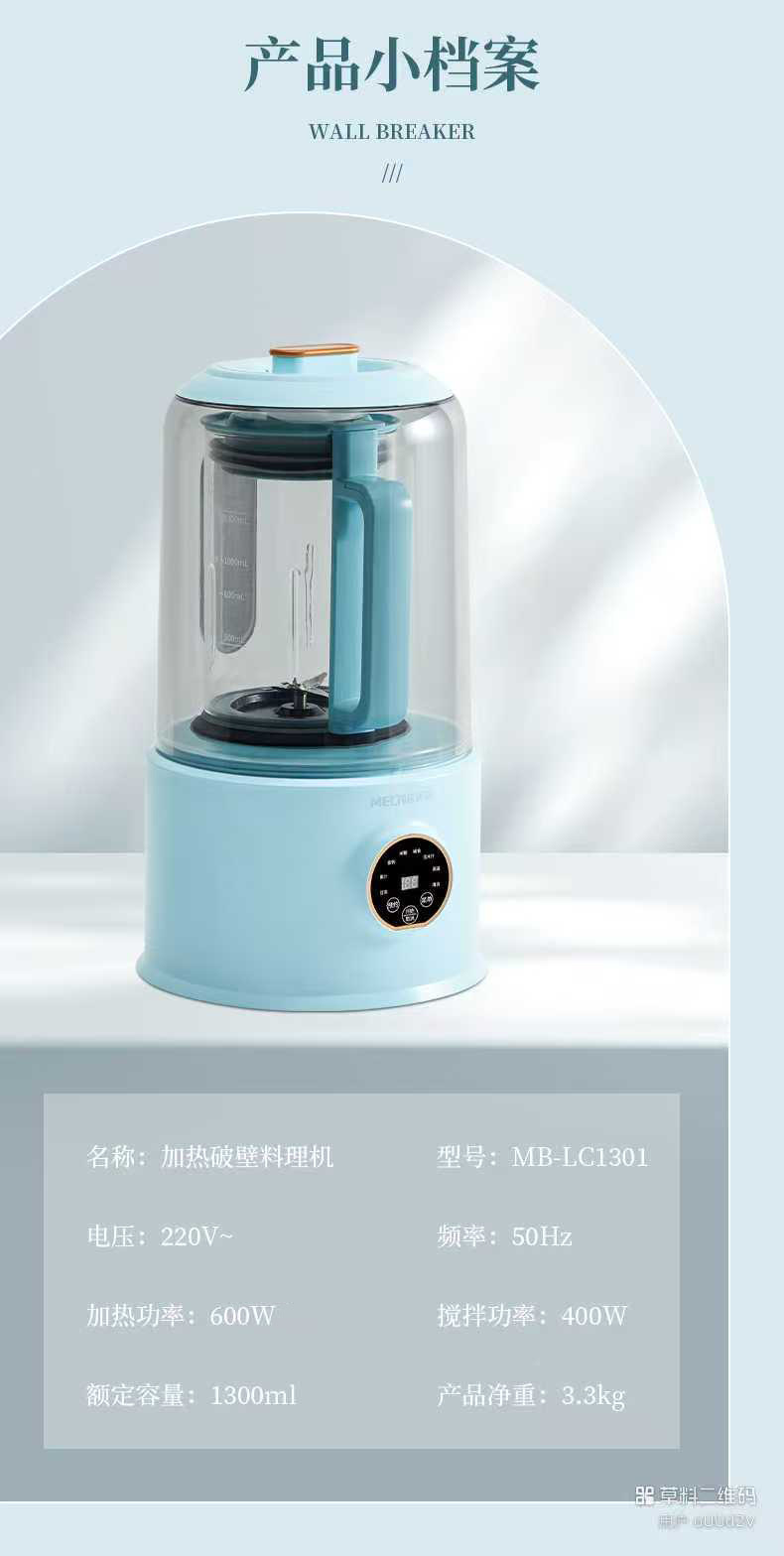 • Meiling 1.5L 다기능 벽 파괴 기계 MB-LC1652