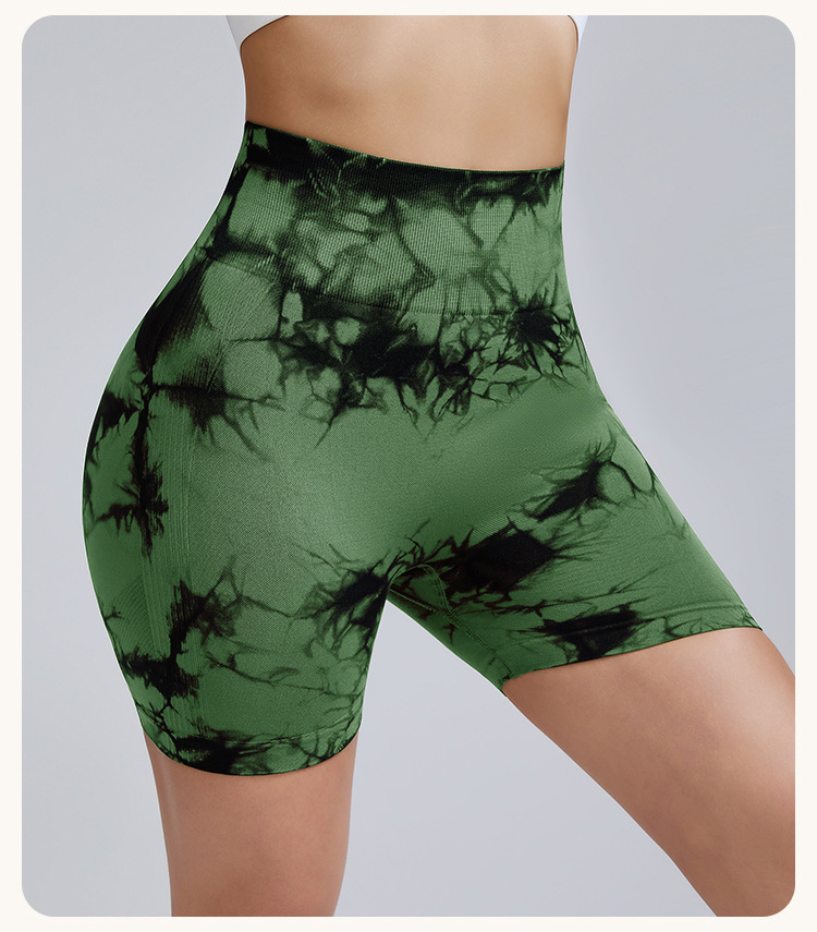 여름 3점 런닝 피트니스 타이다이 요가반바지 엉덩이 리프팅 타이트 속건 스포츠반바지 복숭아힙 여성팬츠