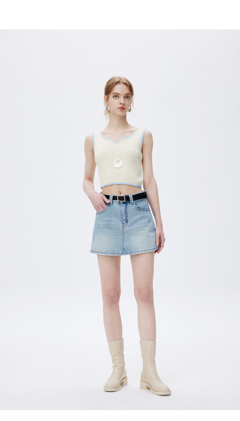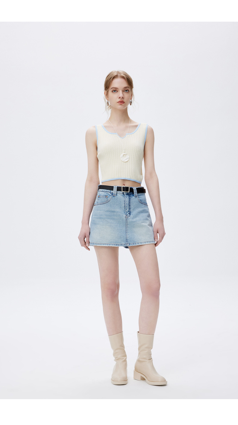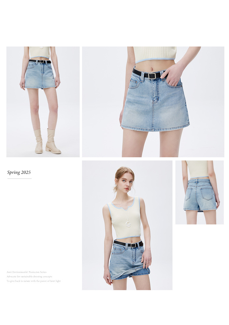 고품질 2025 여름 데님 스커트 여성용 하이 웨이스트 노출 방지 다용도 라이트 블루 심플한 디자인 스커트 스판덱스스토어 가기