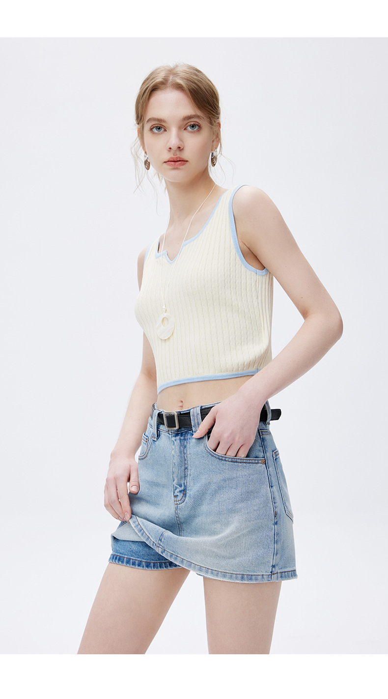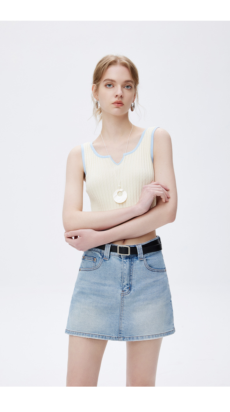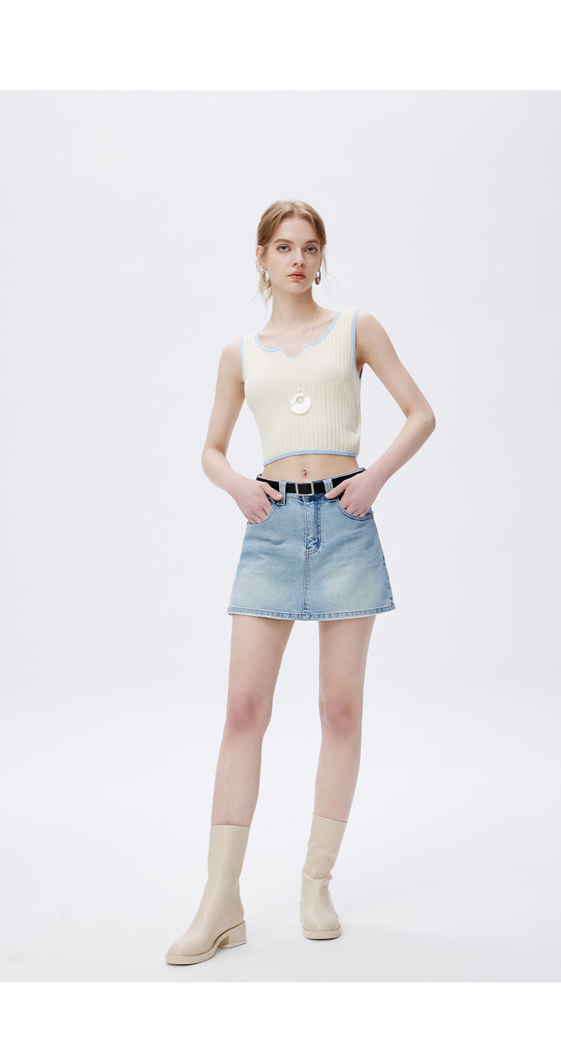 고품질 2025 여름 데님 스커트 여성용 하이 웨이스트 노출 방지 다용도 라이트 블루 심플한 디자인 스커트 스판덱스스토어 가기