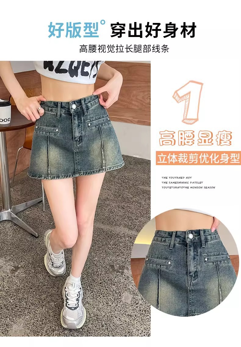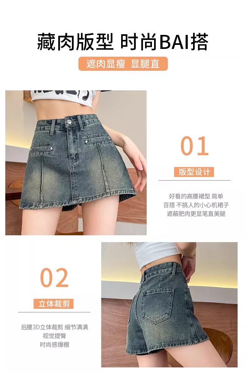 데님 스커트, 여성 힙 스커트, 여름 핫걸 하이웨이스트, 활용도 높은 미니 스커트, 섹시 스커트 팬츠, 반바지스토어 가기