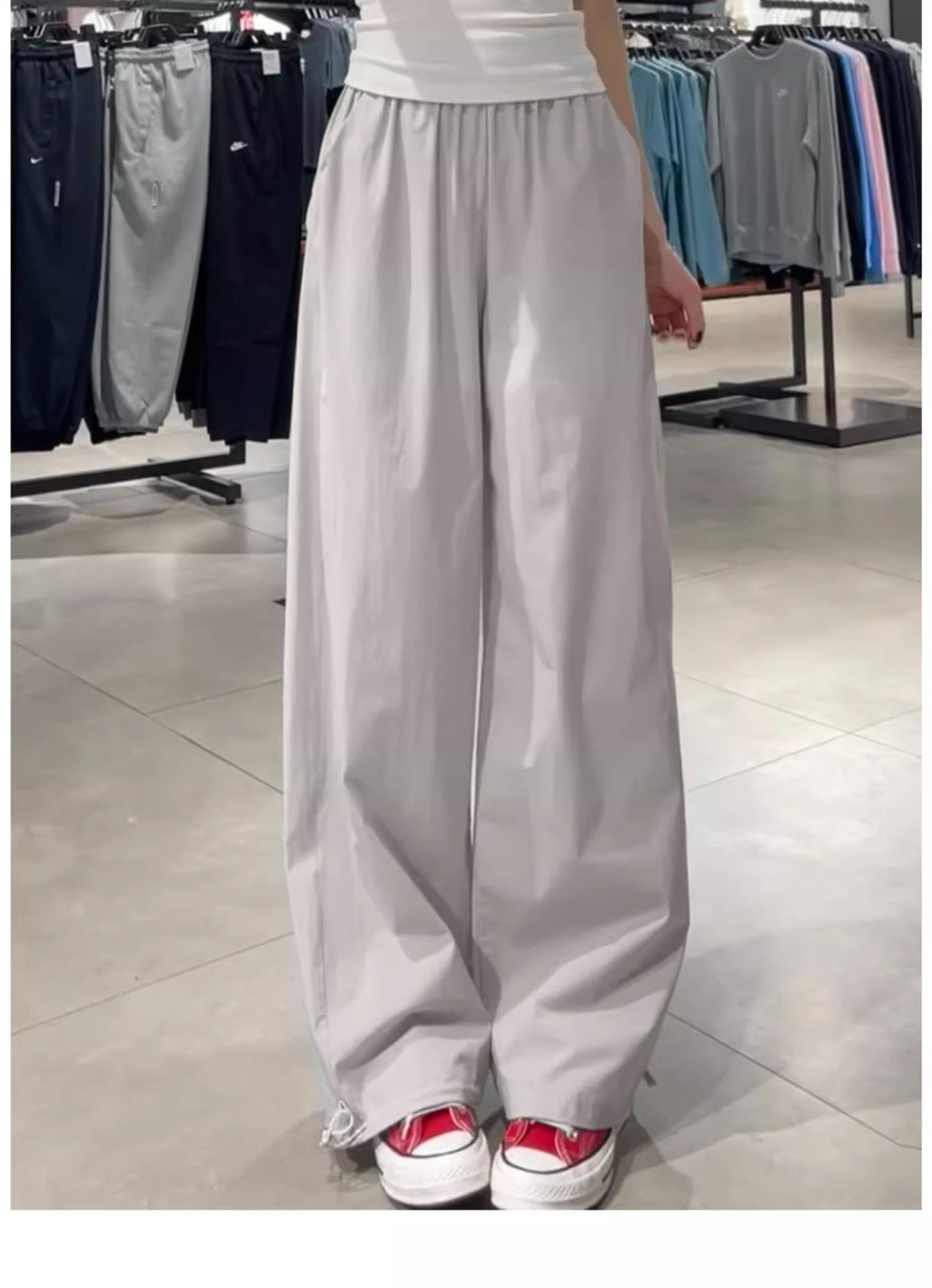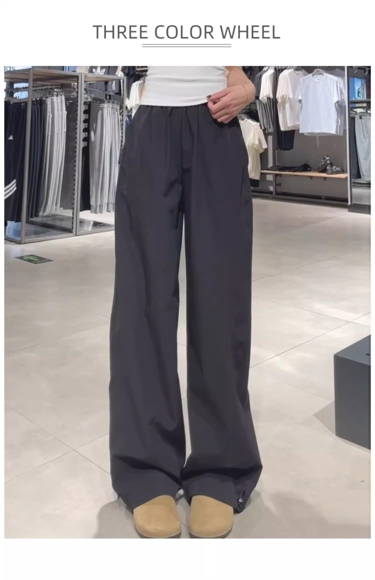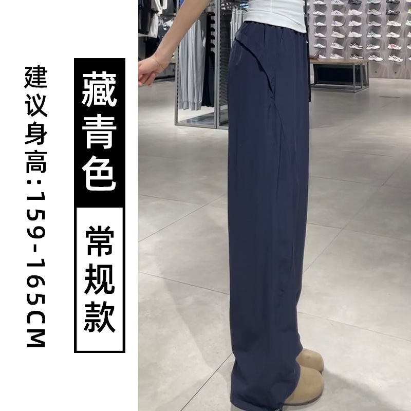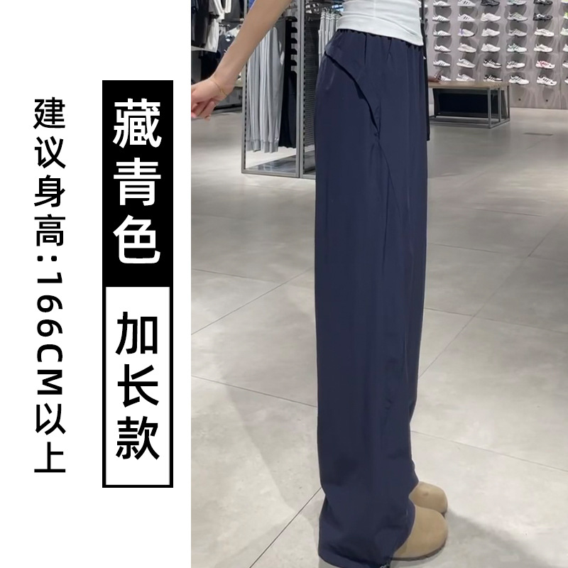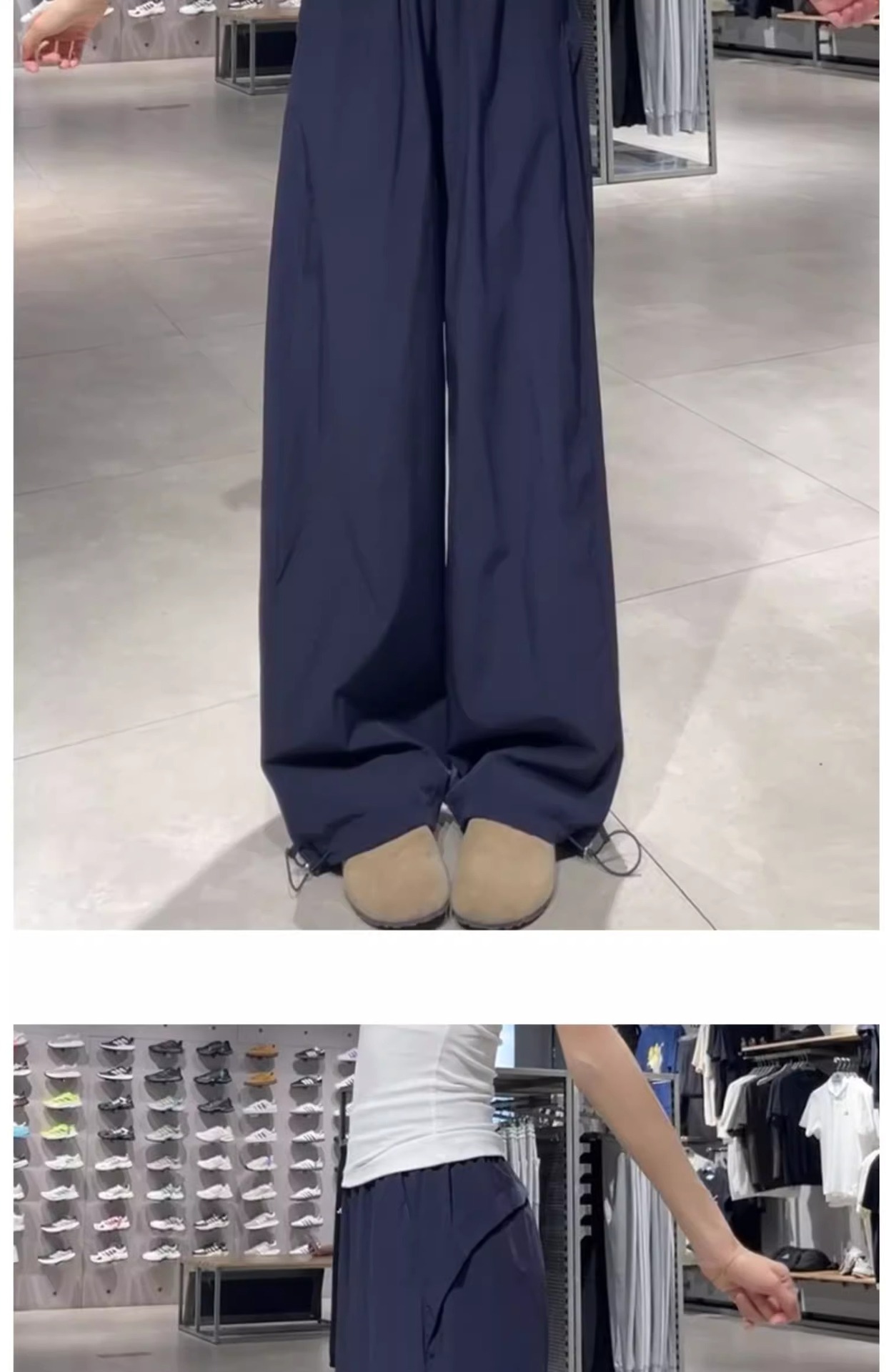 네이비 빠른 건조 작업복 여성 여름 2025 새로운 높은 허리 느슨한 드레이퍼 캐주얼 슬리밍 스포츠 넓은 다리 바지스토어 가기