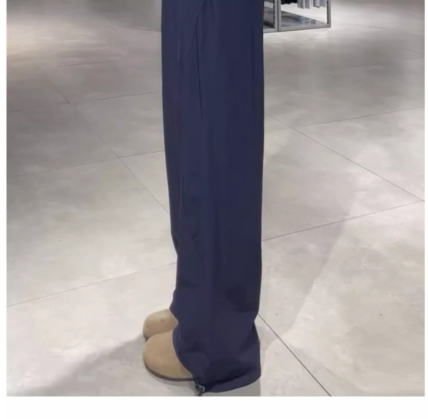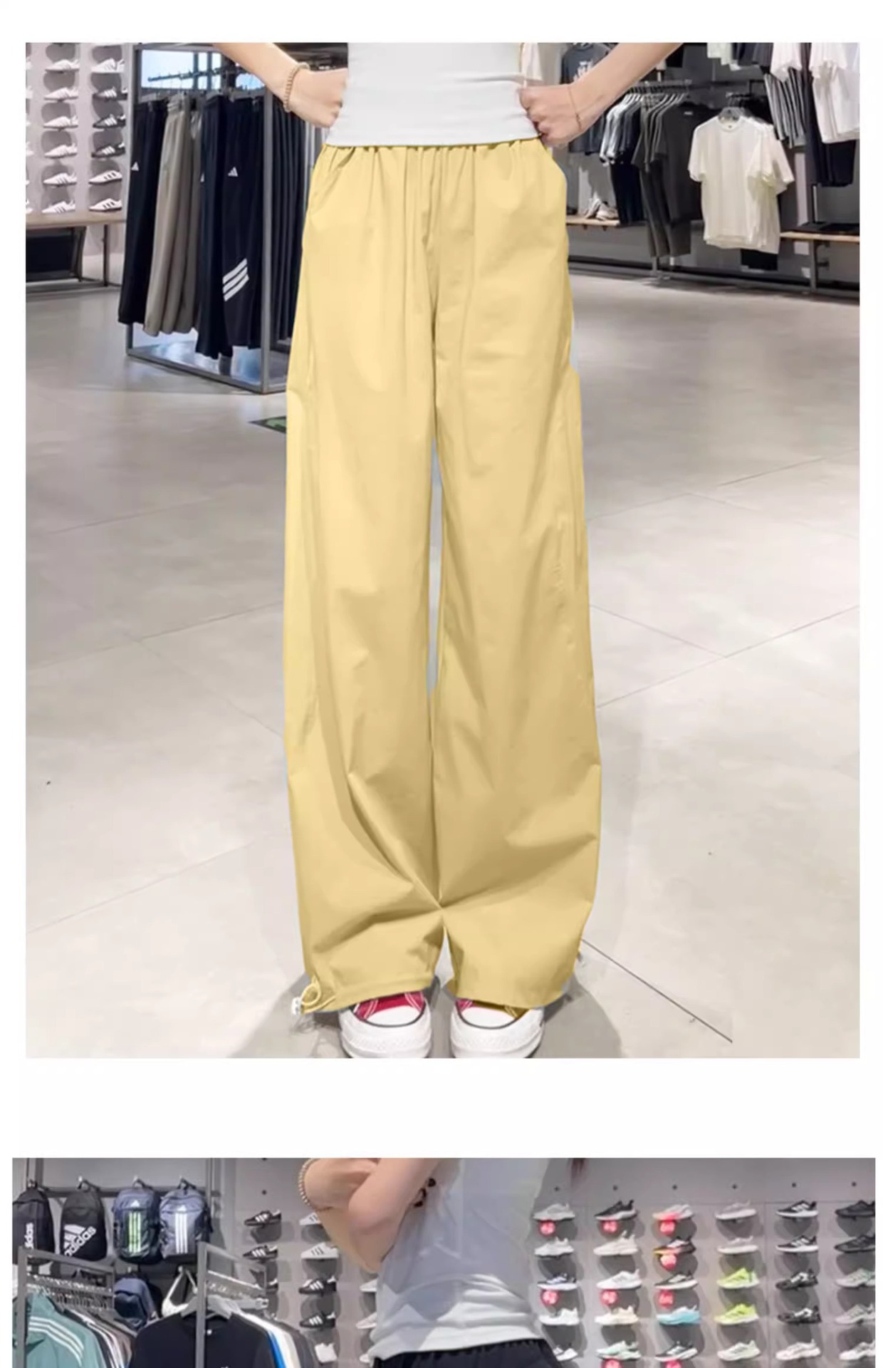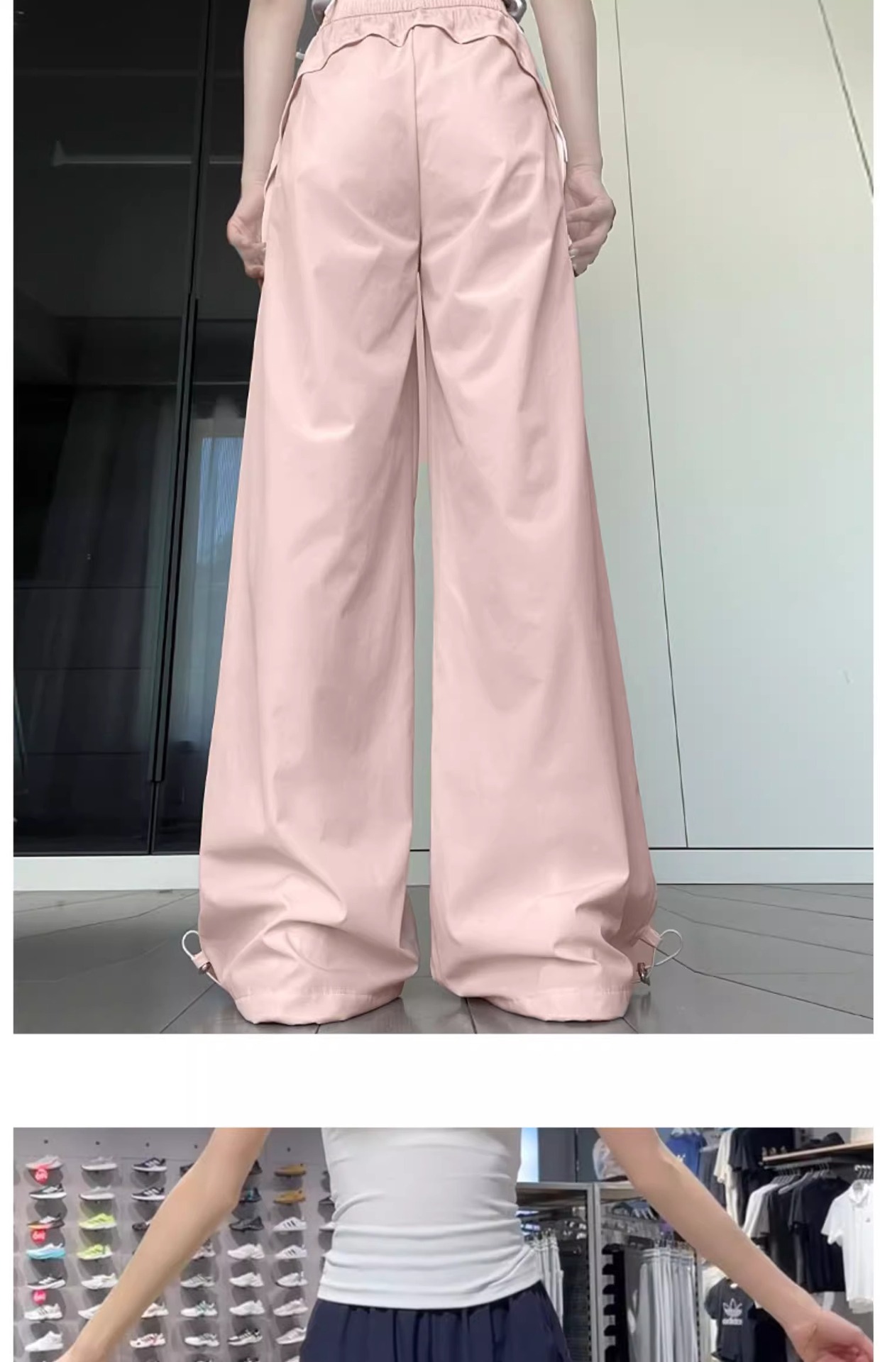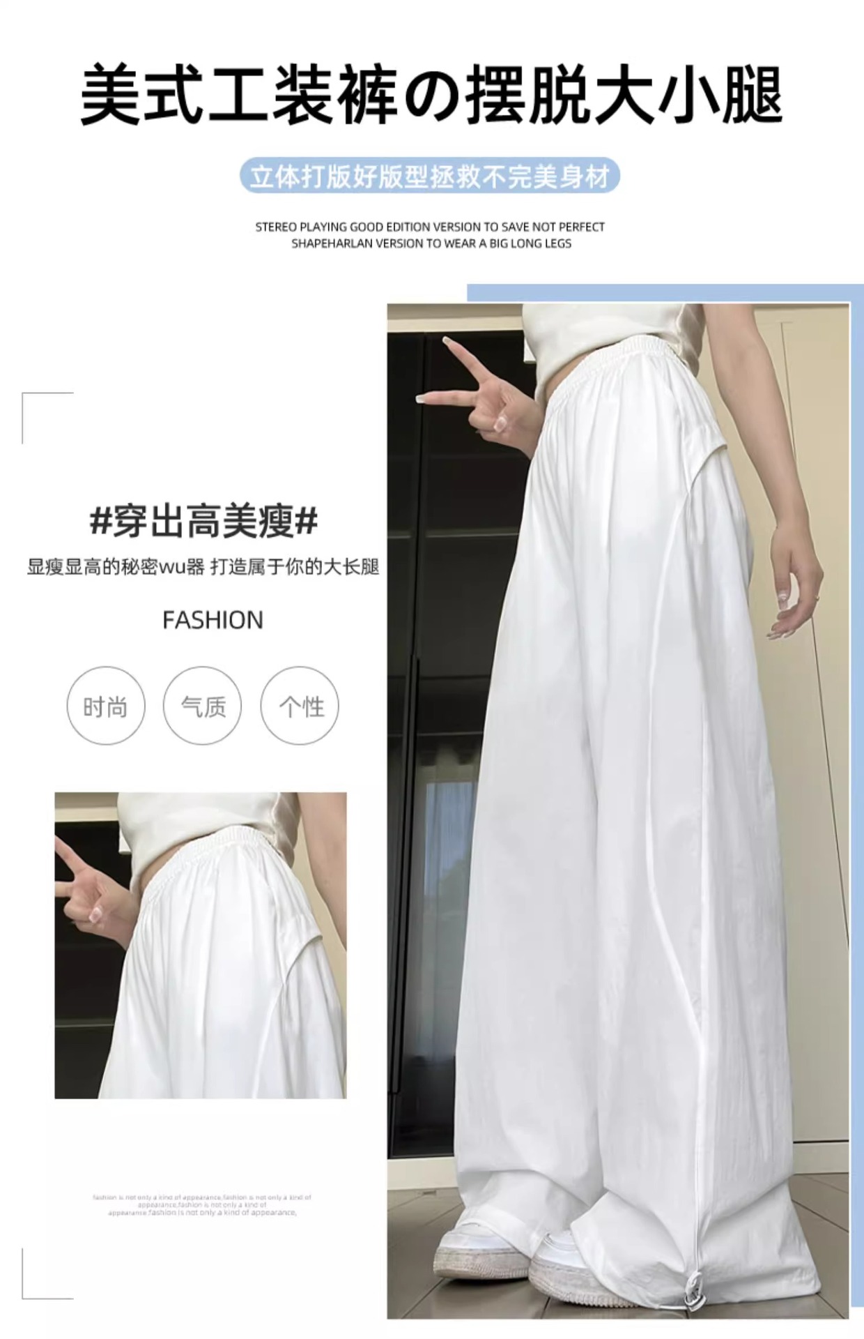 네이비 빠른 건조 작업복 여성 여름 2025 새로운 높은 허리 느슨한 드레이퍼 캐주얼 슬리밍 스포츠 넓은 다리 바지스토어 가기