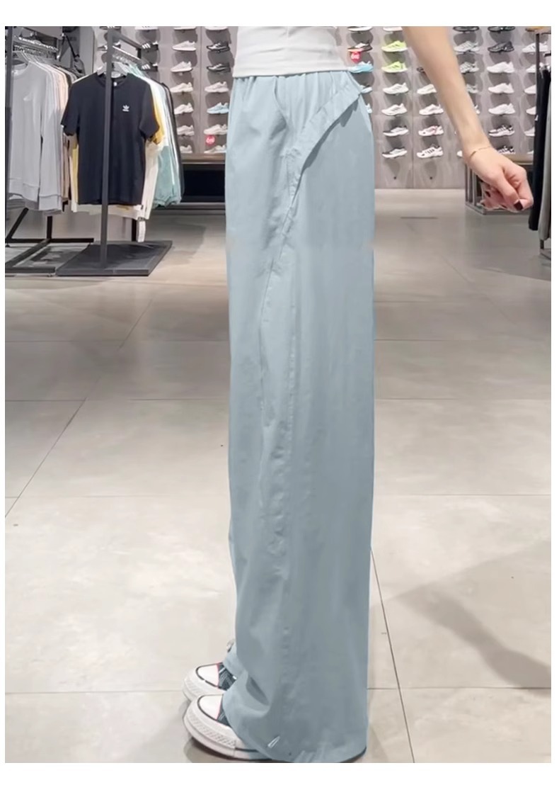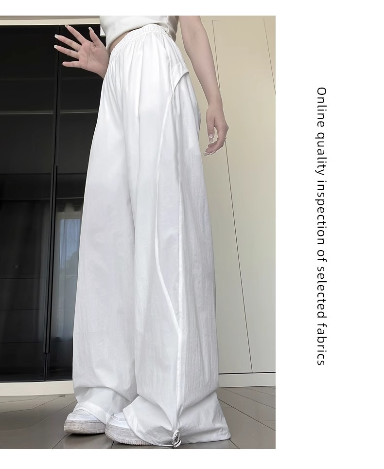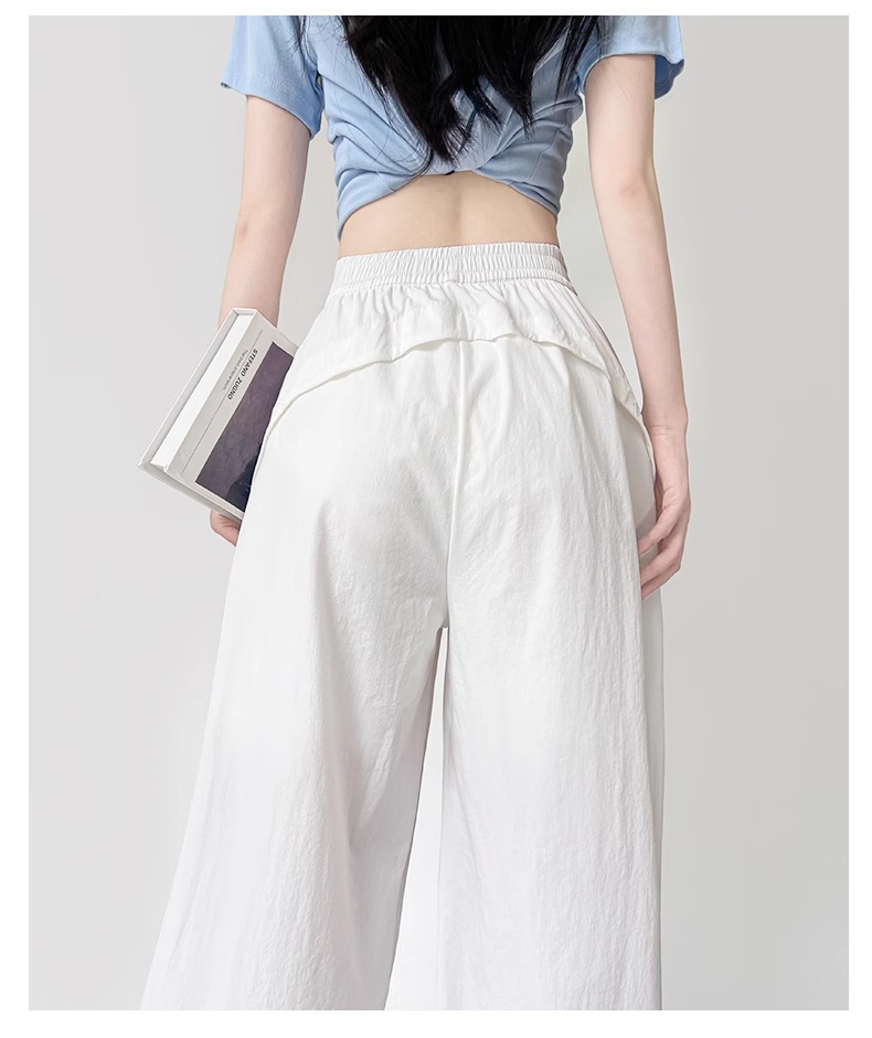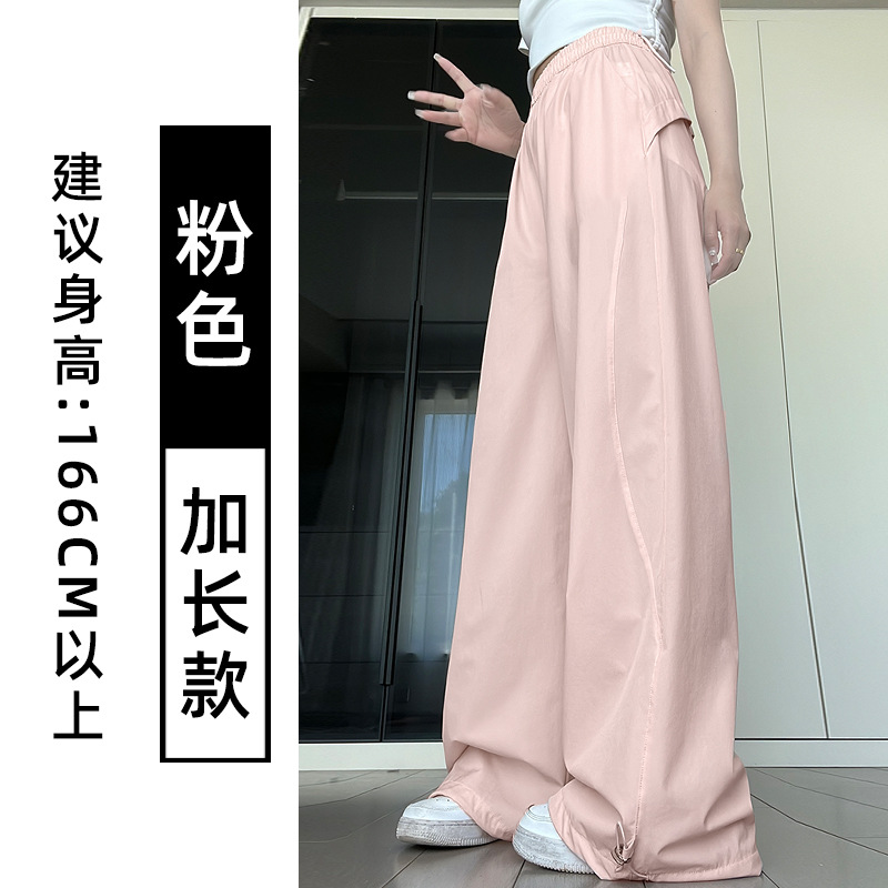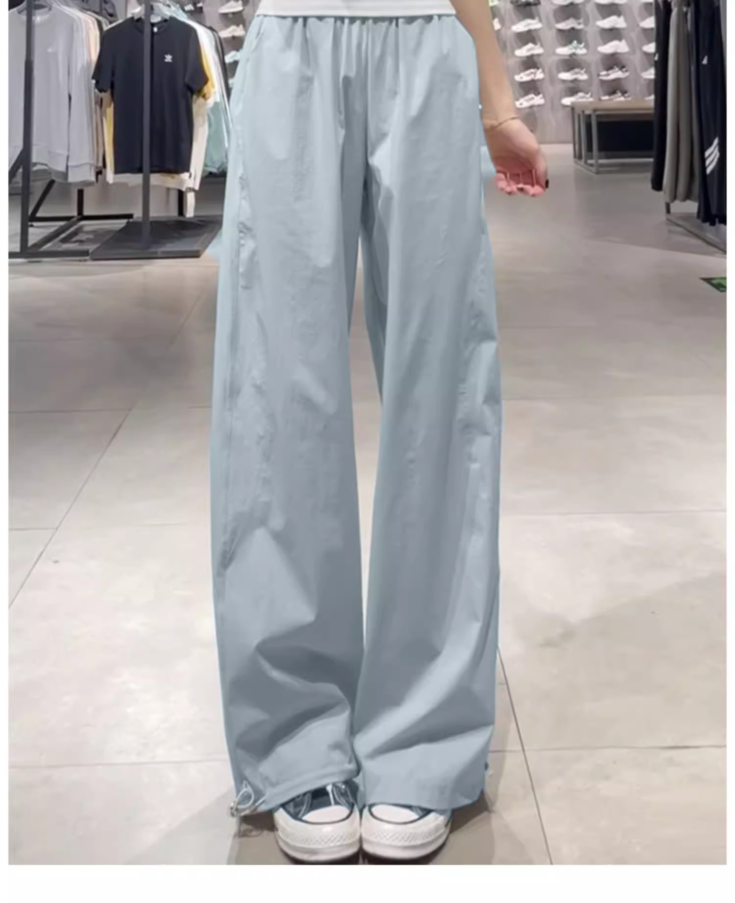 네이비 빠른 건조 작업복 여성 여름 2025 새로운 높은 허리 느슨한 드레이퍼 캐주얼 슬리밍 스포츠 넓은 다리 바지스토어 가기