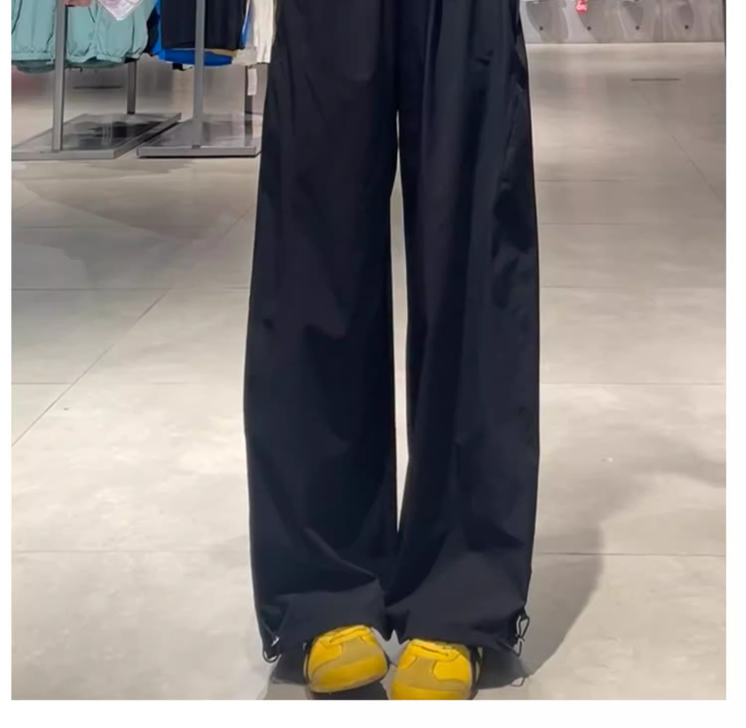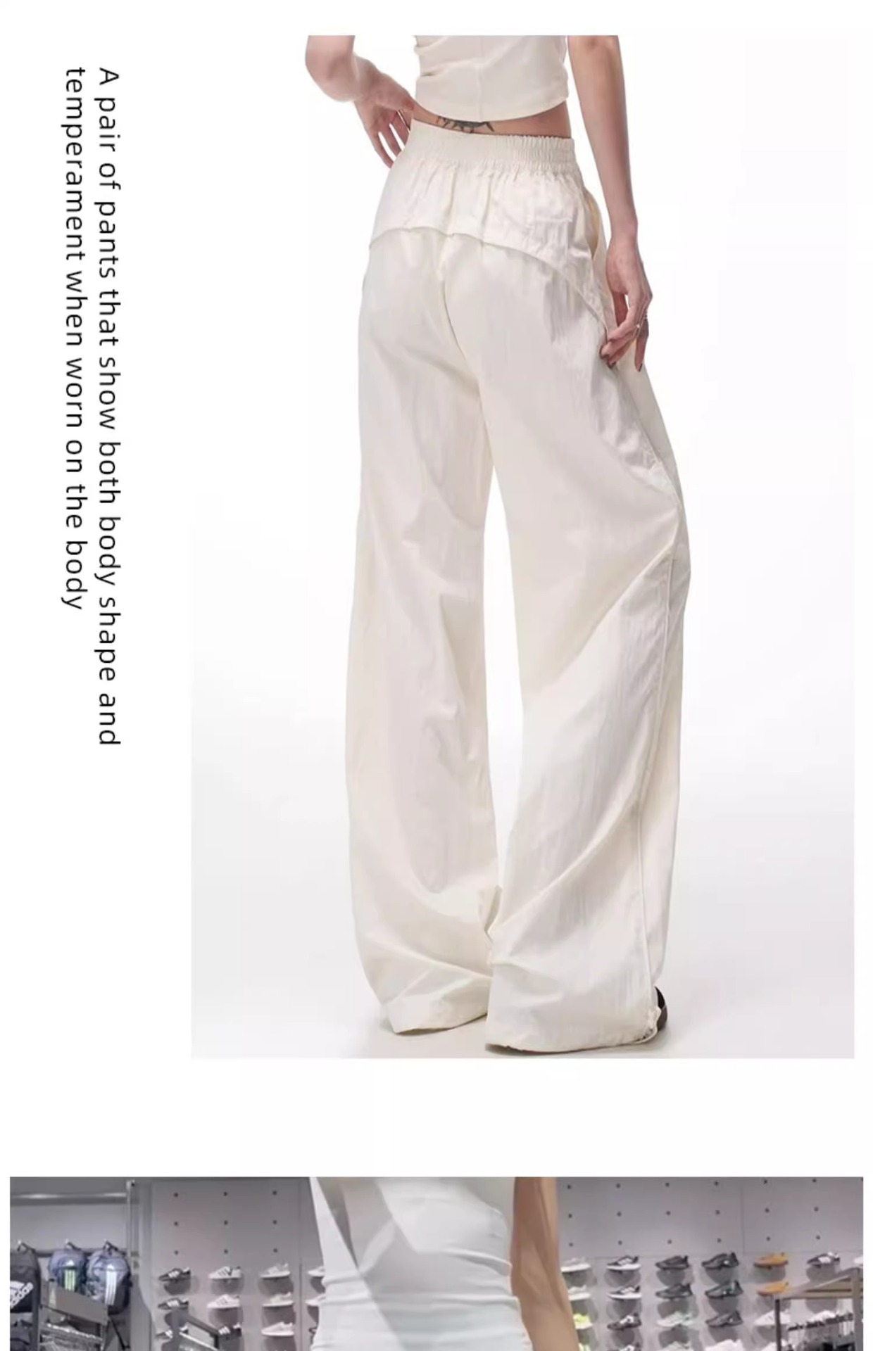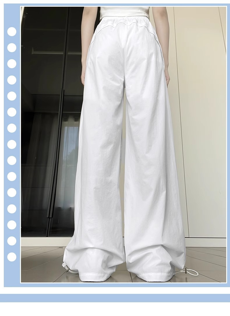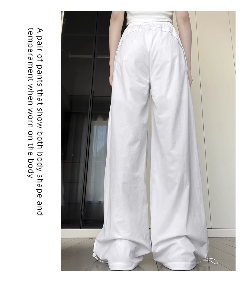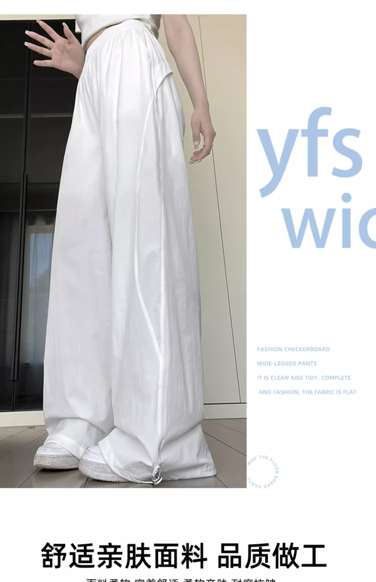 네이비 빠른 건조 작업복 여성 여름 2025 새로운 높은 허리 느슨한 드레이퍼 캐주얼 슬리밍 스포츠 넓은 다리 바지스토어 가기