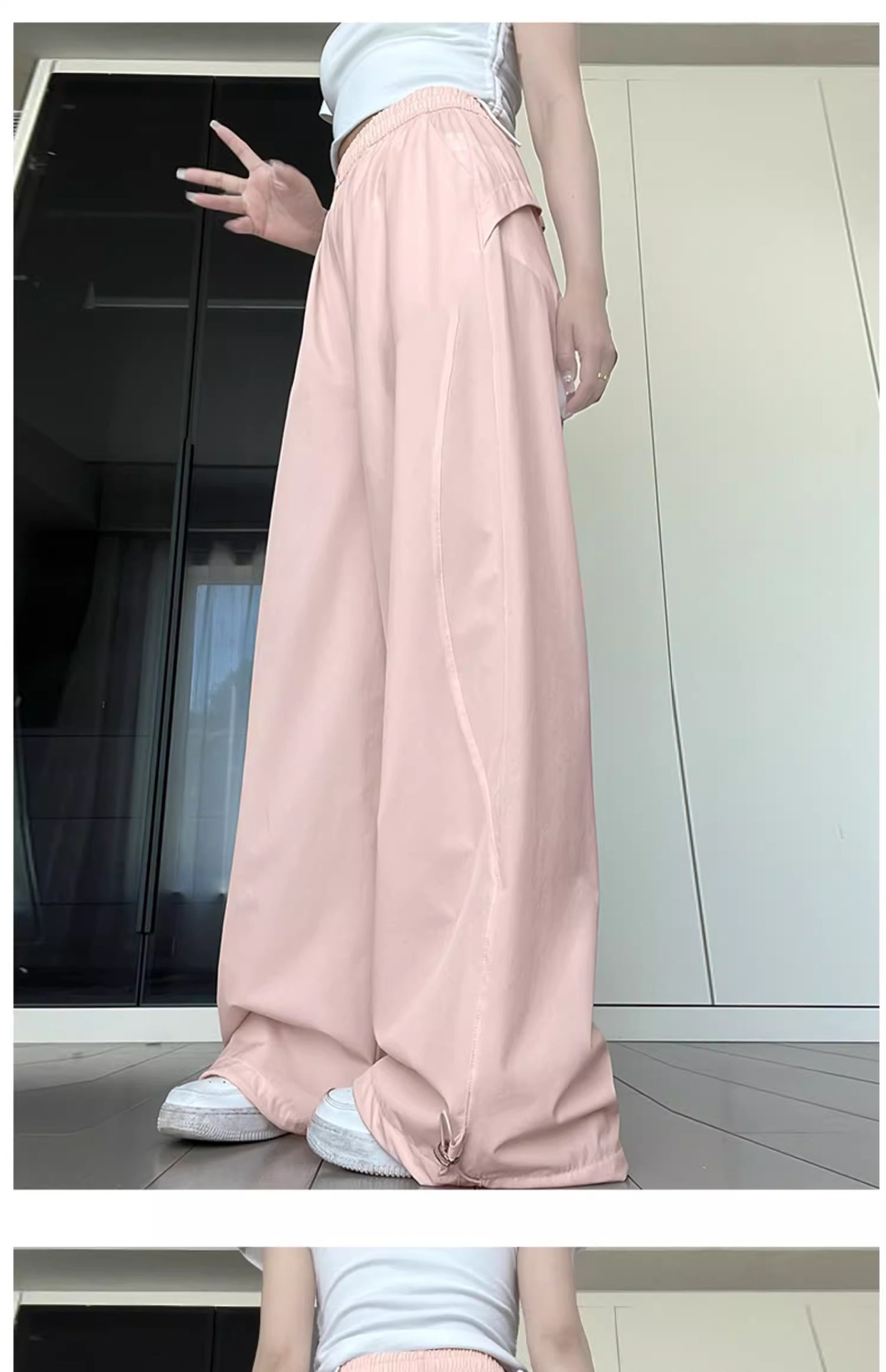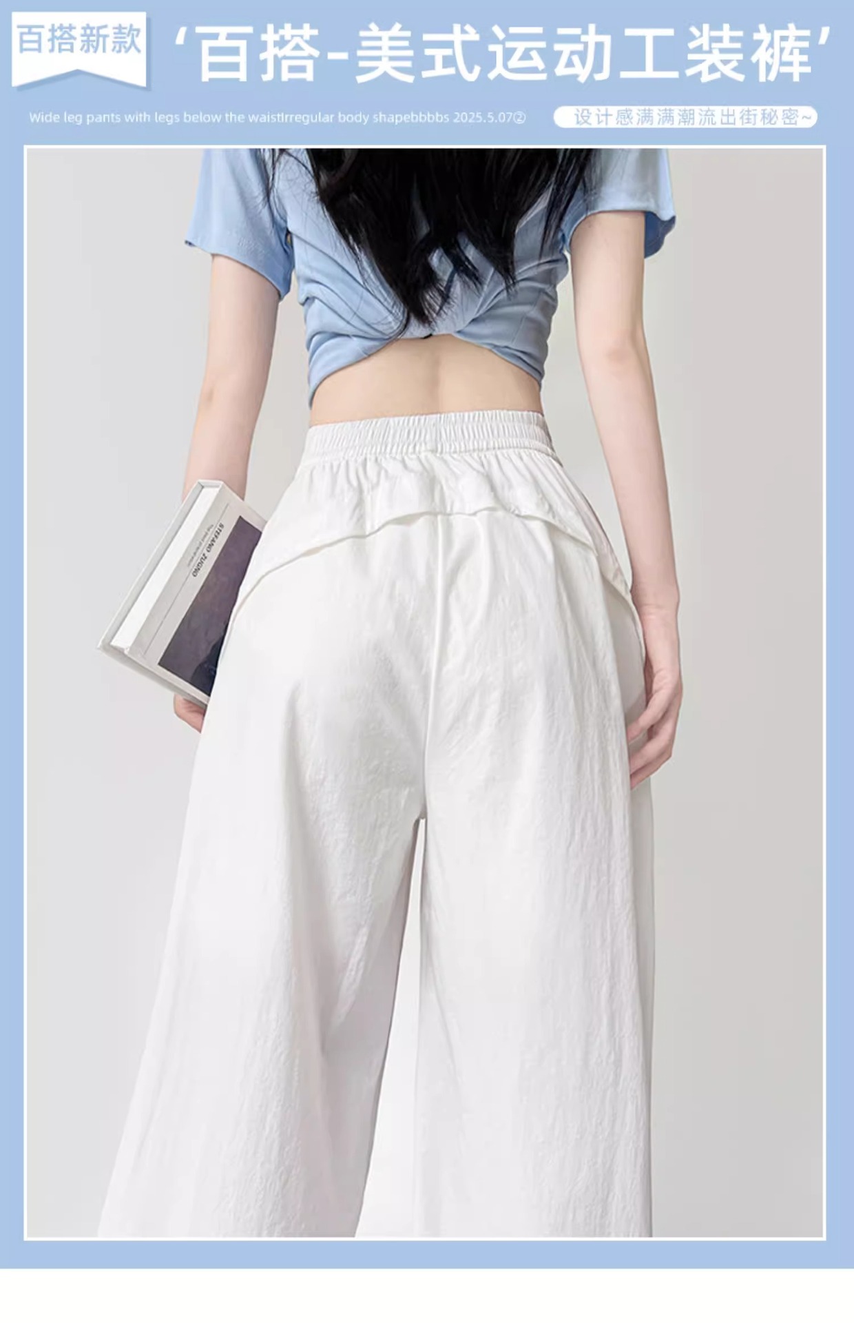 네이비 빠른 건조 작업복 여성 여름 2025 새로운 높은 허리 느슨한 드레이퍼 캐주얼 슬리밍 스포츠 넓은 다리 바지