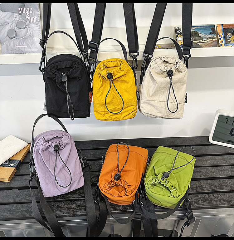 2025 새로운 일본 유행 스포츠 드로스트링 휴대 전화 가방 경량 유행 통근 야외 캐주얼 크로스 바디 여성용 가방