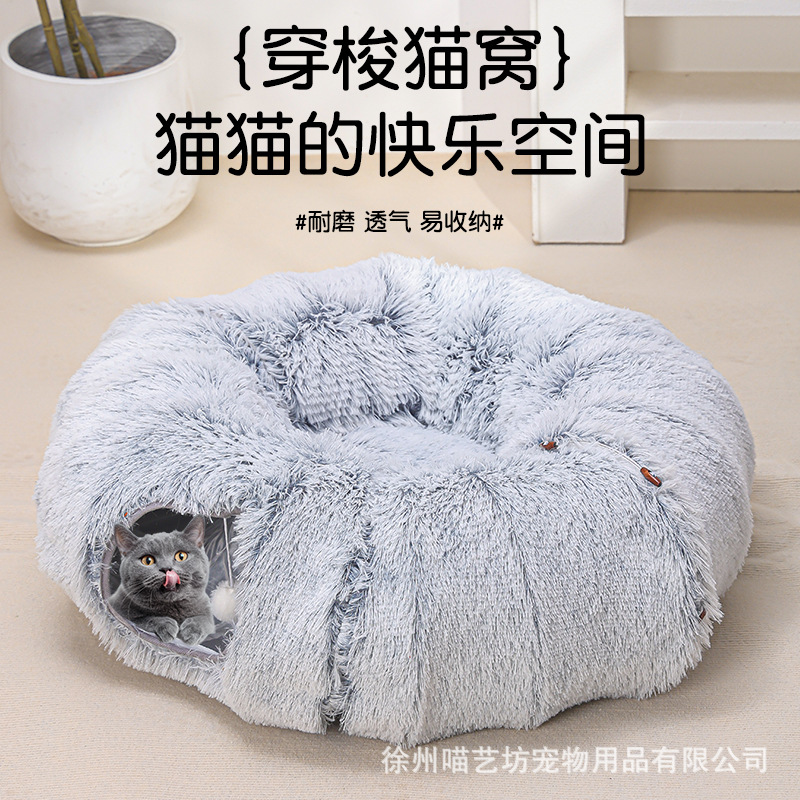 고양이 터널 고양이 둥지 국경 간 야외 가을, 겨울 새로운 스타일 분리형 접이식 맞춤형 플러시 도넛 애완 동물 둥지스토어 가기