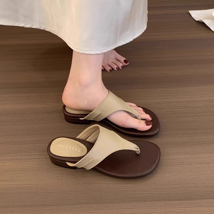 여름에 밖에서 신는 여성용 두꺼운 굽 슬리퍼, 새로운 한국 스타일 슬리퍼, 펜던트 샌들, 요정 스타일 프렌치 스타일의 아름다운 샌들