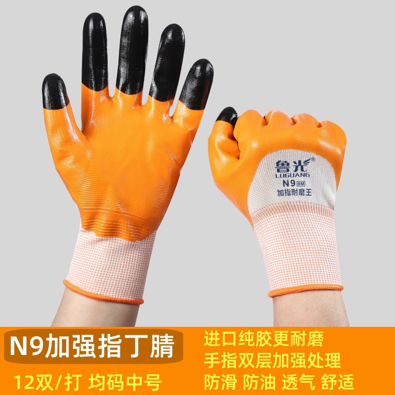 Luguang N9 강화 내마모성 왕 장갑 노동 보호 딥 글루 코팅 건설 현장 작업 방수 및 내유성 고무 장갑
