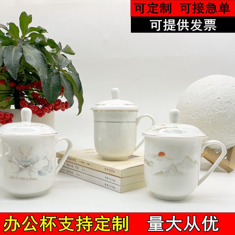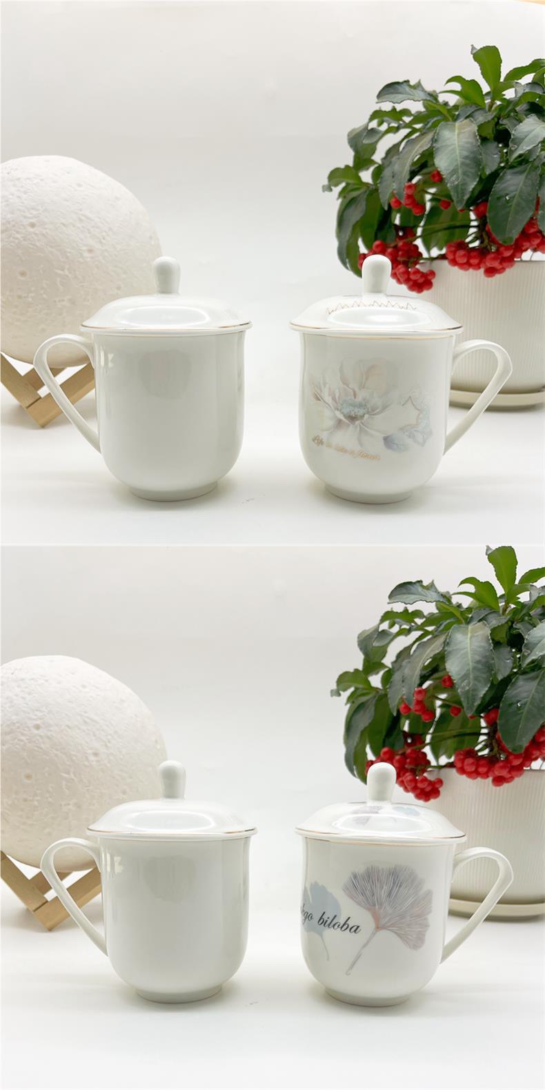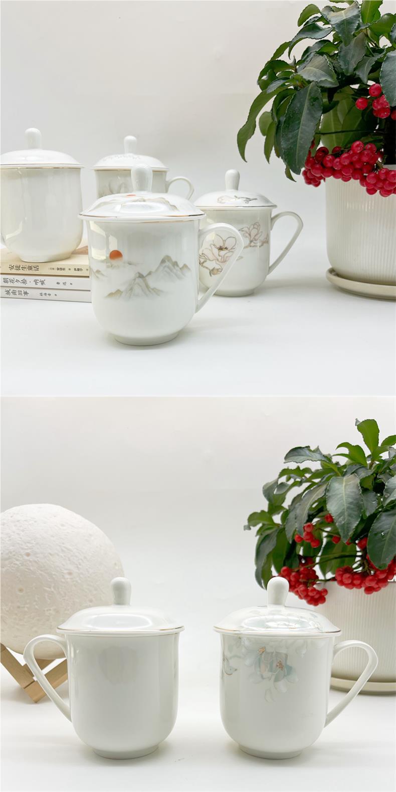 뚜껑이 있는 호텔 회사 세라믹 찻잔, 본차이나 워터컵, 리셉션 찻잔, 회의 선물, 사무실 컵스토어 가기