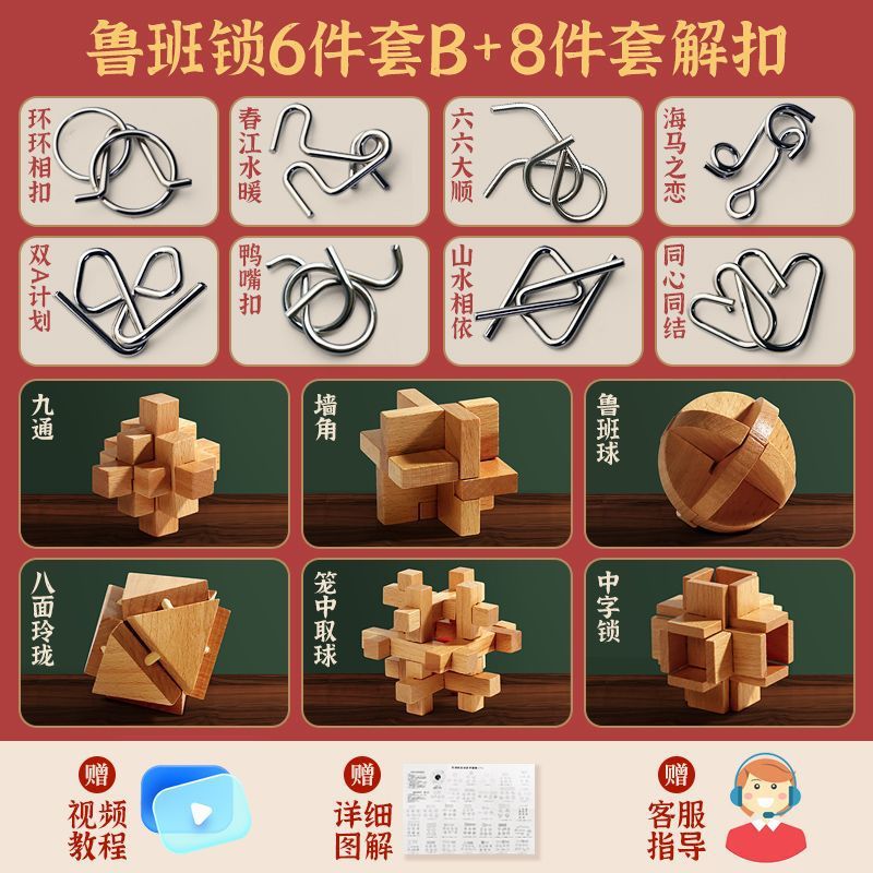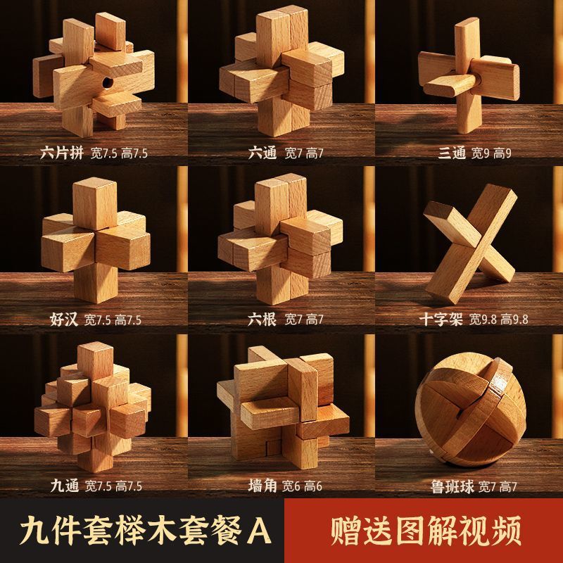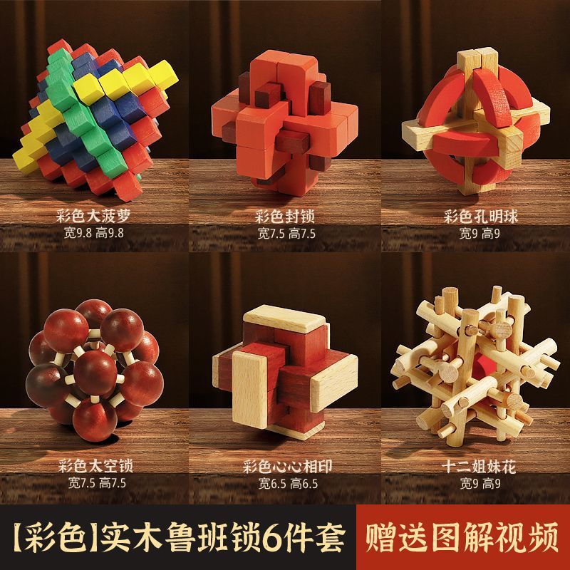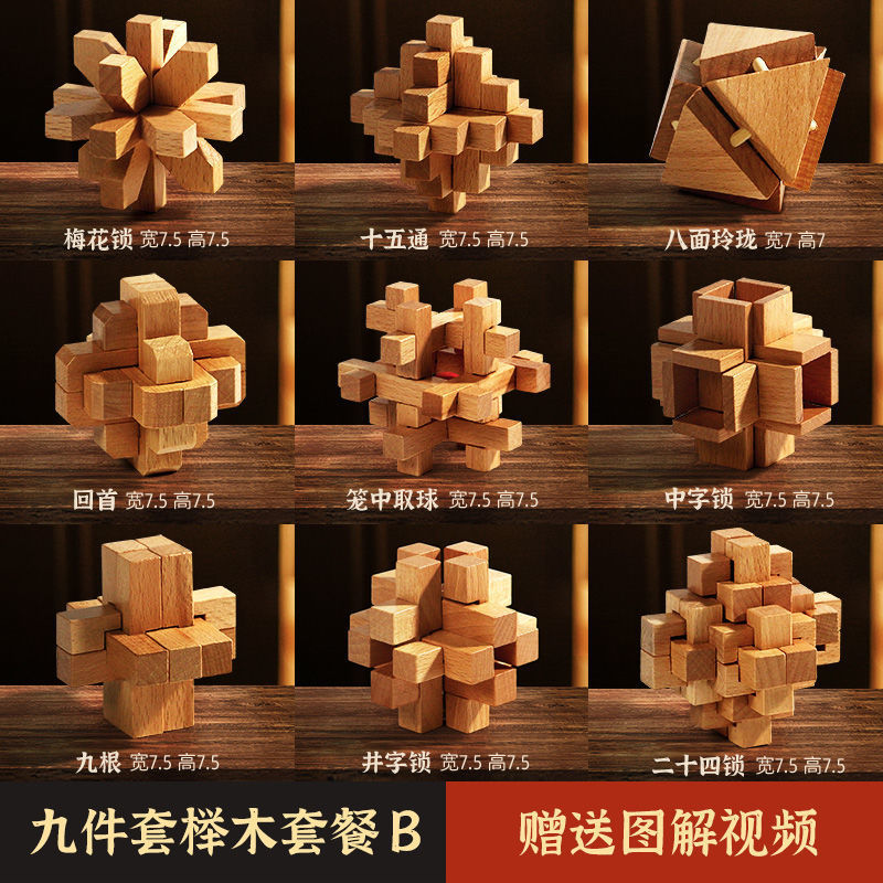 Luban Lock Kongming Lock 지능 개발 및 루프 해소 세트 어린이 및 소년을위한 전체 세트 6-12 세 생일 선물 AliExpress
