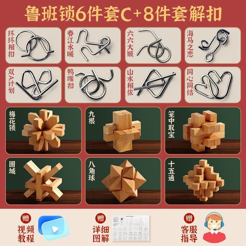 Luban Lock Kongming Lock 지능 개발 및 루프 해소 세트 어린이 및 소년을위한 전체 세트 6-12 세 생일 선물 AliExpress스토어 가기