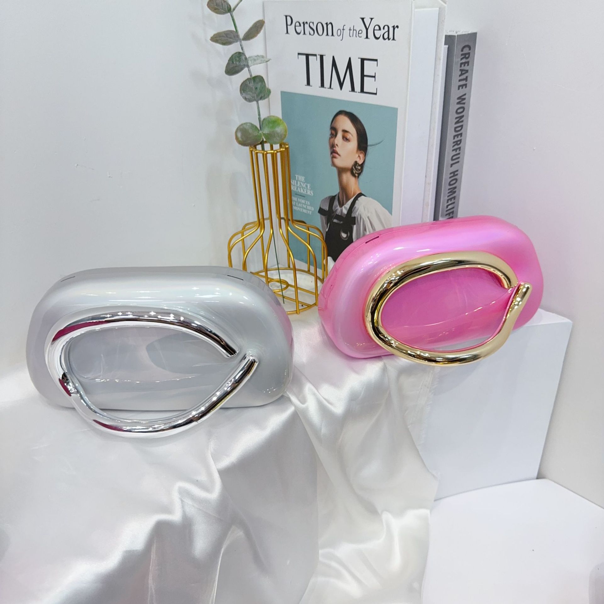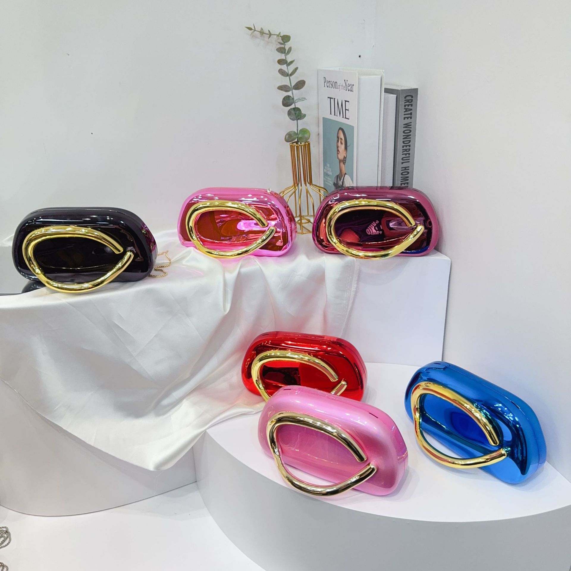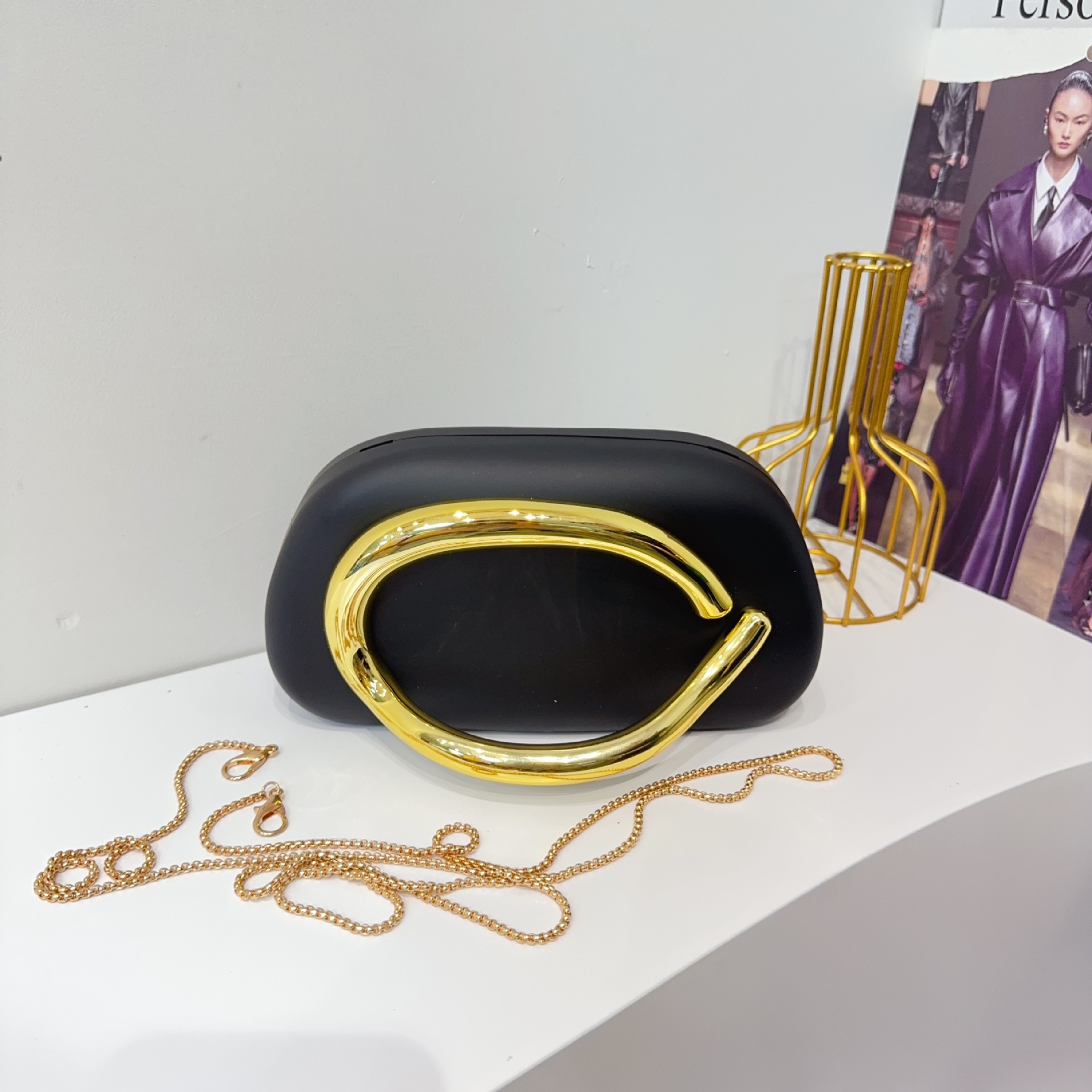 유럽과 미국의 국경 간 트렌디 한 클래식 라운드 박스 클러치 백 이브닝 백 아크릴 가방 빈티지 금속 핸들러 숄더 크로스 바디 백