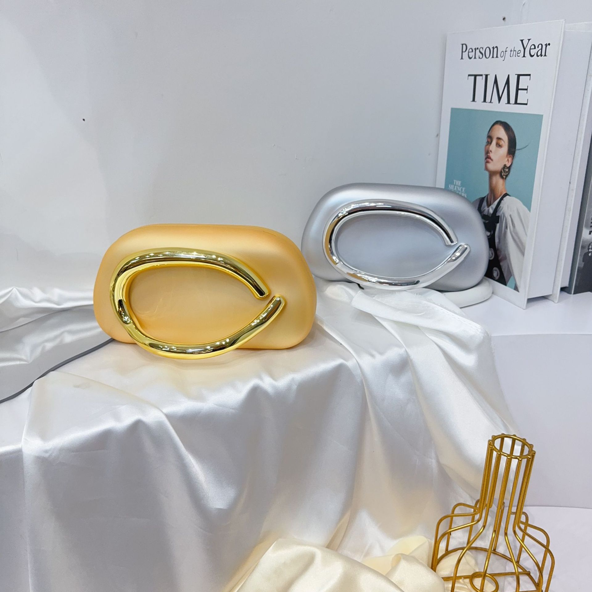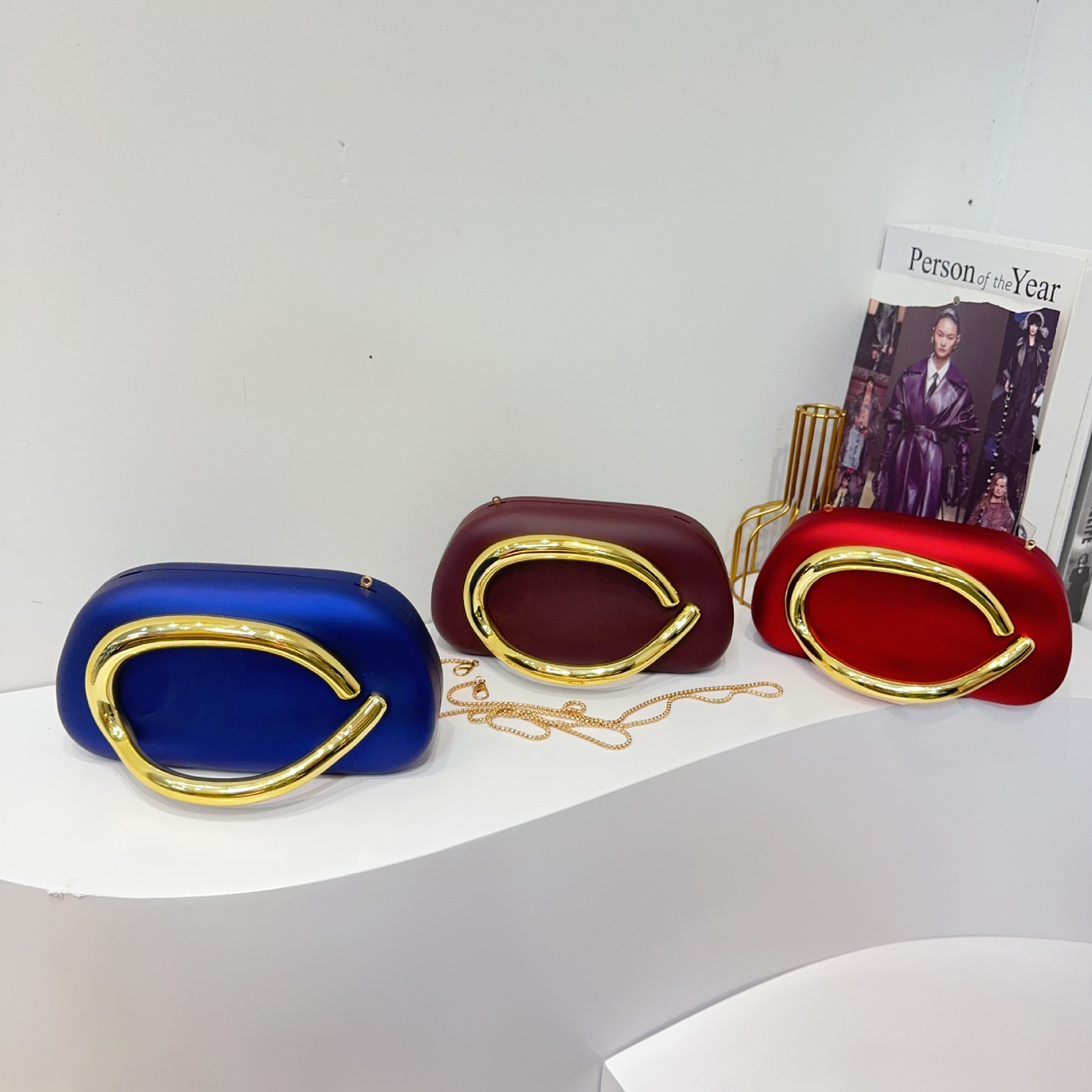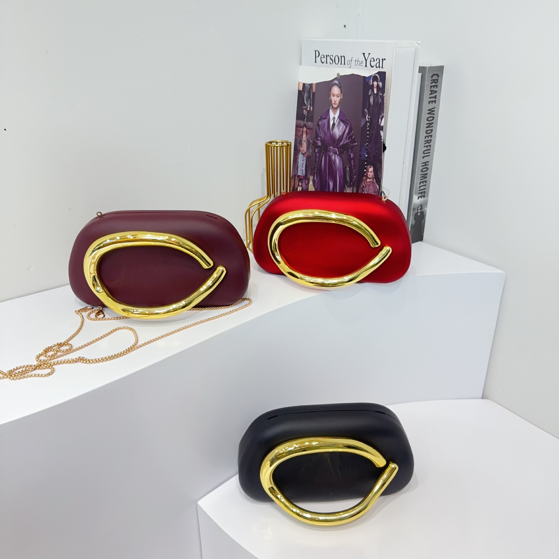 유럽과 미국의 국경 간 트렌디 한 클래식 라운드 박스 클러치 백 이브닝 백 아크릴 가방 빈티지 금속 핸들러 숄더 크로스 바디 백