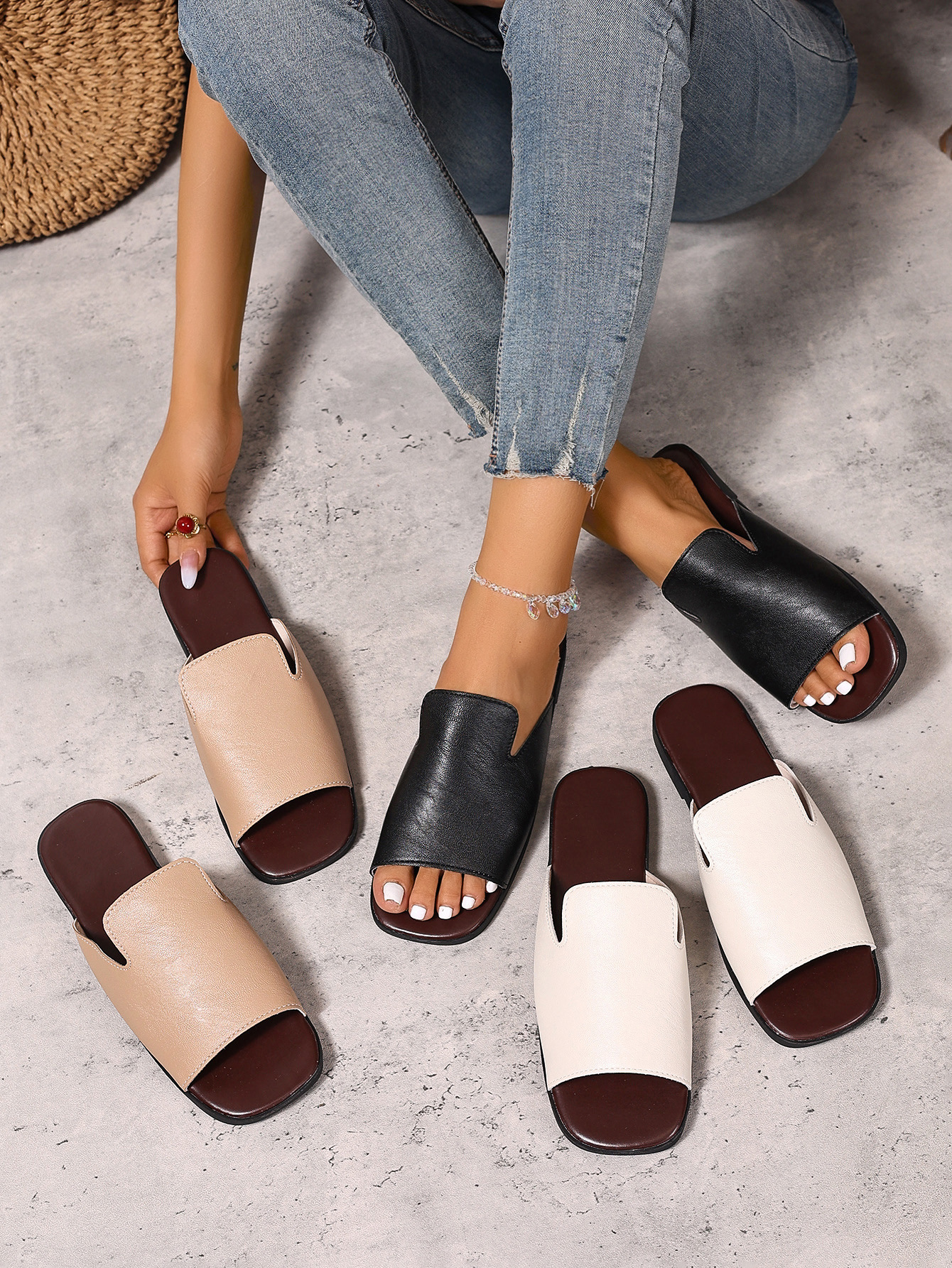 대외 무역 도매 여성용 대형 플랫 슬리퍼, 부드러운 밑창, 다용도 슬리퍼, 2025 여름 신상품 경량 샌들