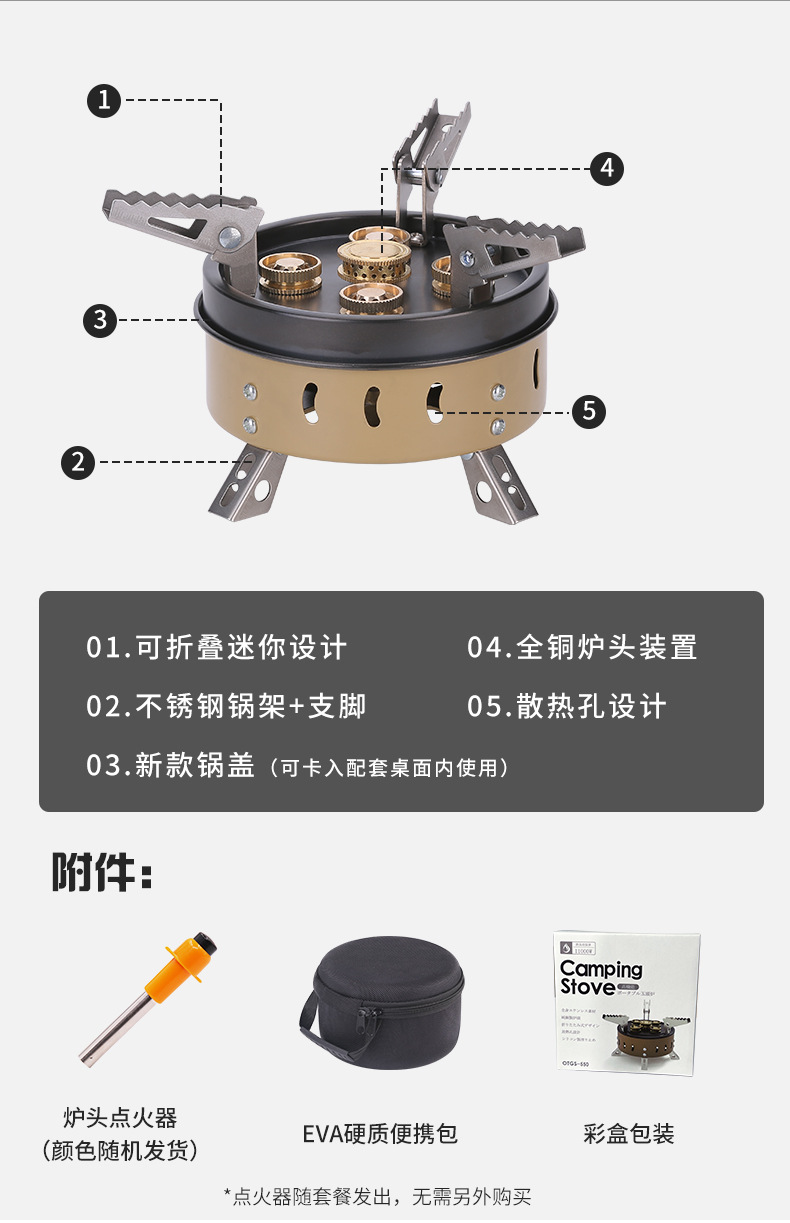 • 카키색(5심 스토브 + 점화기 + EVA 핸드백 + 전자 라이터 + 컬러 박스)