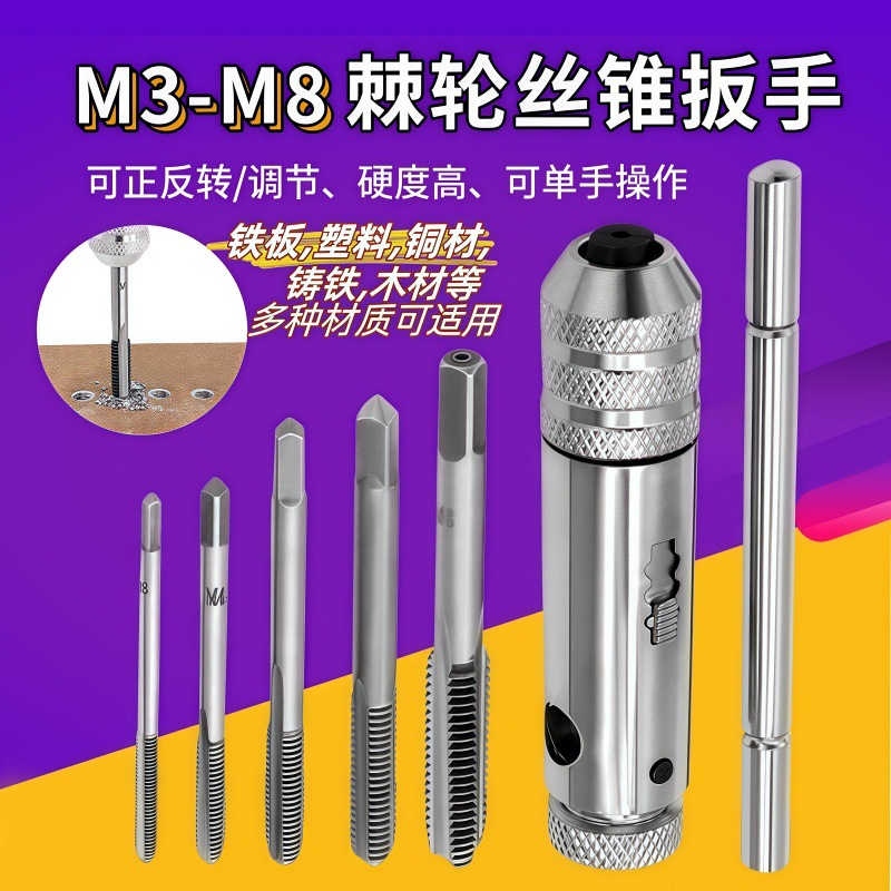 M3-M8 조정 가능한 래칫 핸드 탭 렌치, 핸드 탭 포워드 및 리버스 렌치, 핸드 탭 액세서리