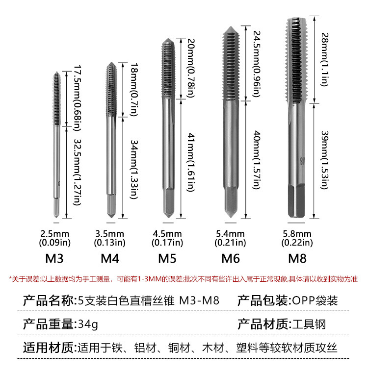 • M3-M8 탭 5개 세트(렌치 없음)