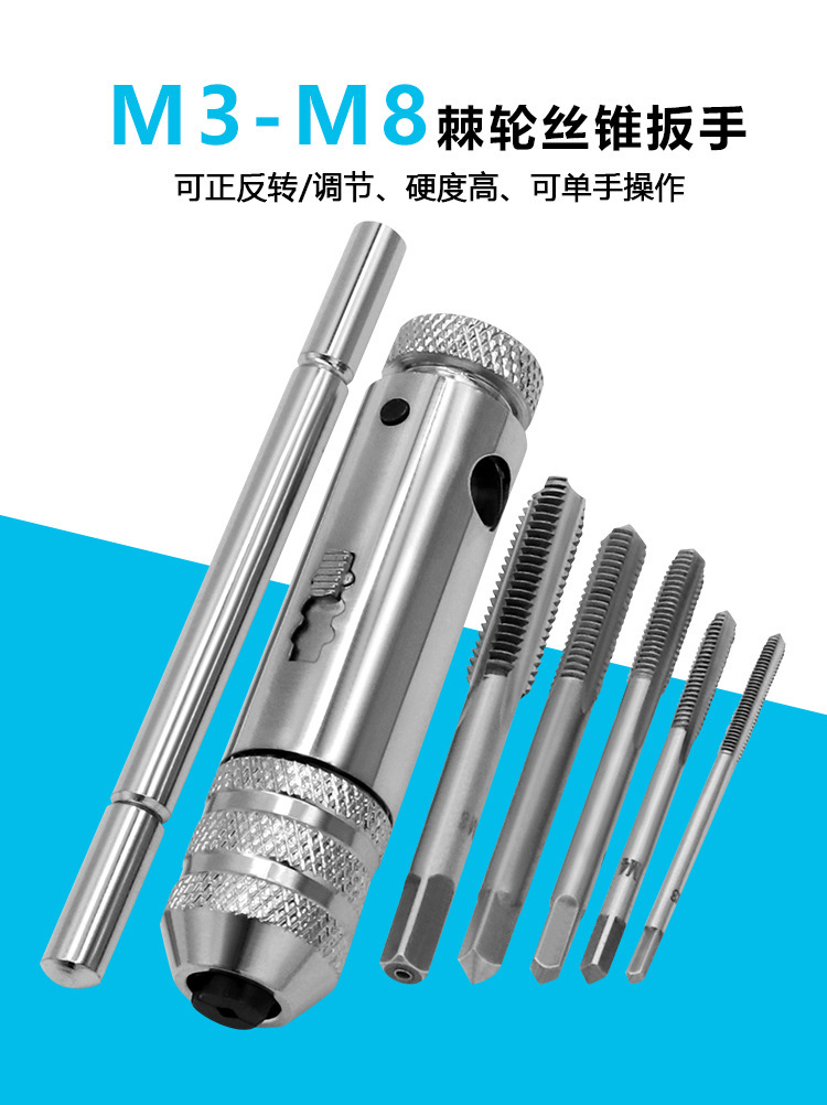 M3-M8 조정 가능한 래칫 핸드 탭 렌치, 핸드 탭 포워드 및 리버스 렌치, 핸드 탭 액세서리스토어 가기