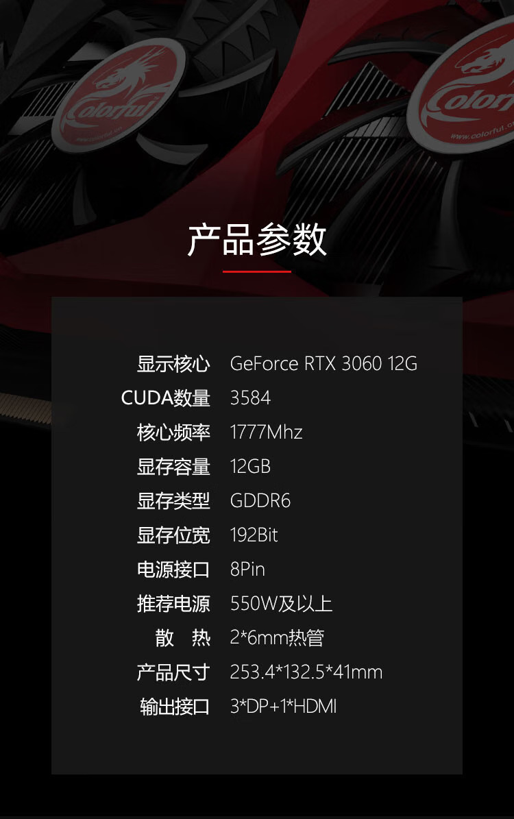무지개 다채로운 RTX3060 Tomahawk 12G 비디오 게임 클립 렌더링 이산 그래픽 카드스토어 가기