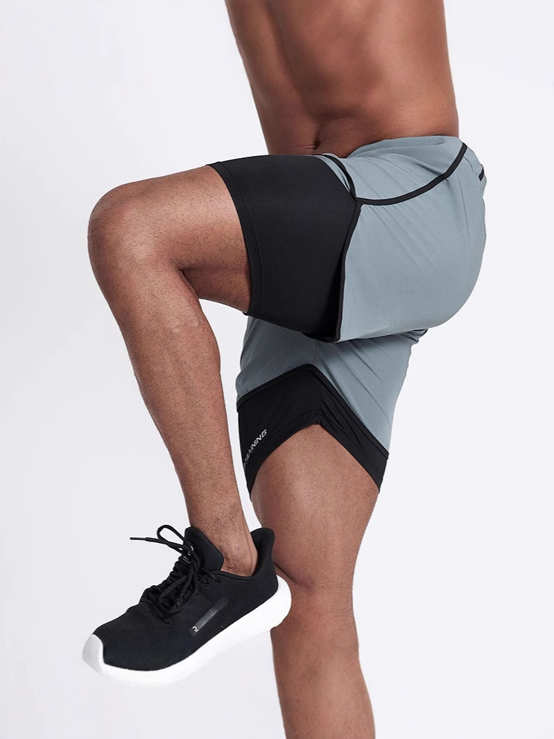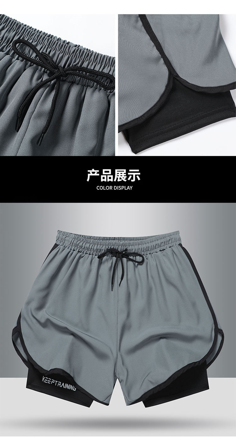 런닝 반바지 남자 마라톤 육상 3 점 바지 줄 지어있는 더블 레이어 바지 스포츠 수영 피트니스 빠른 건조 바지