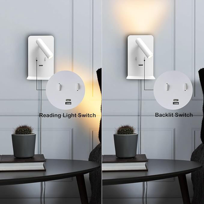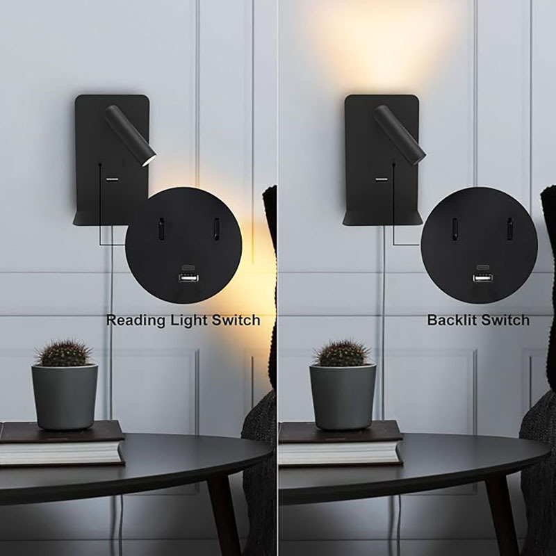 국경 간 LED 벽 램프 USB 포트 휴대 전화 선반 스위치로 충전 침실 벽 램프 미니멀리스트 호텔 침대 옆 독서스토어 가기