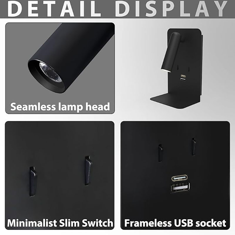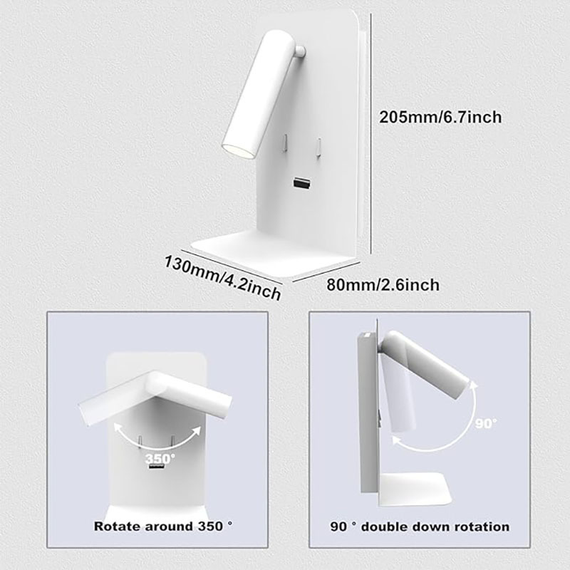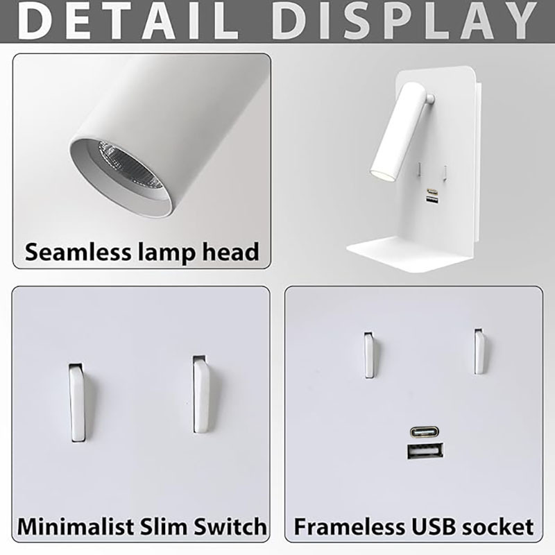 국경 간 LED 벽 램프 USB 포트 휴대 전화 선반 스위치로 충전 침실 벽 램프 미니멀리스트 호텔 침대 옆 독서
