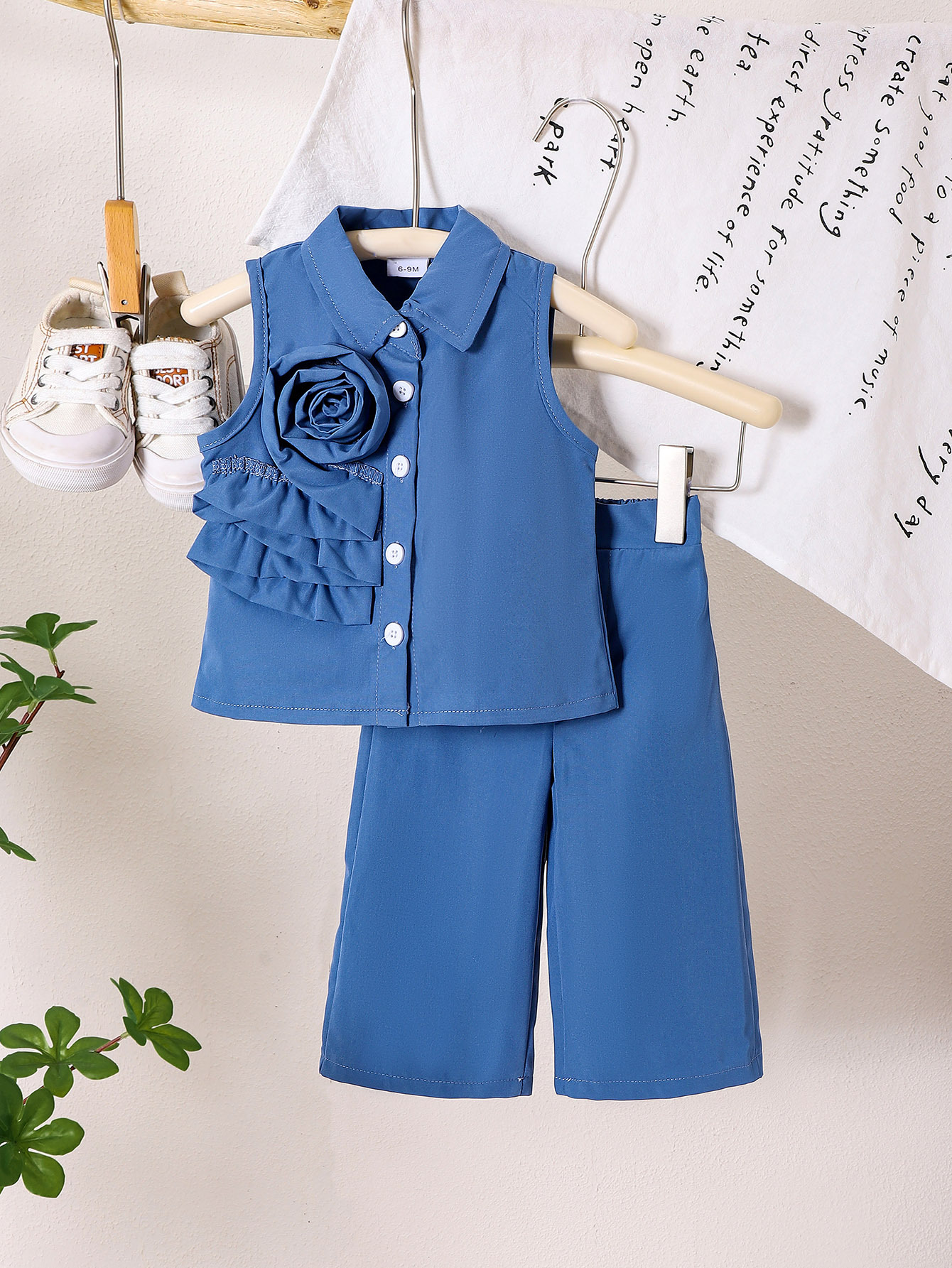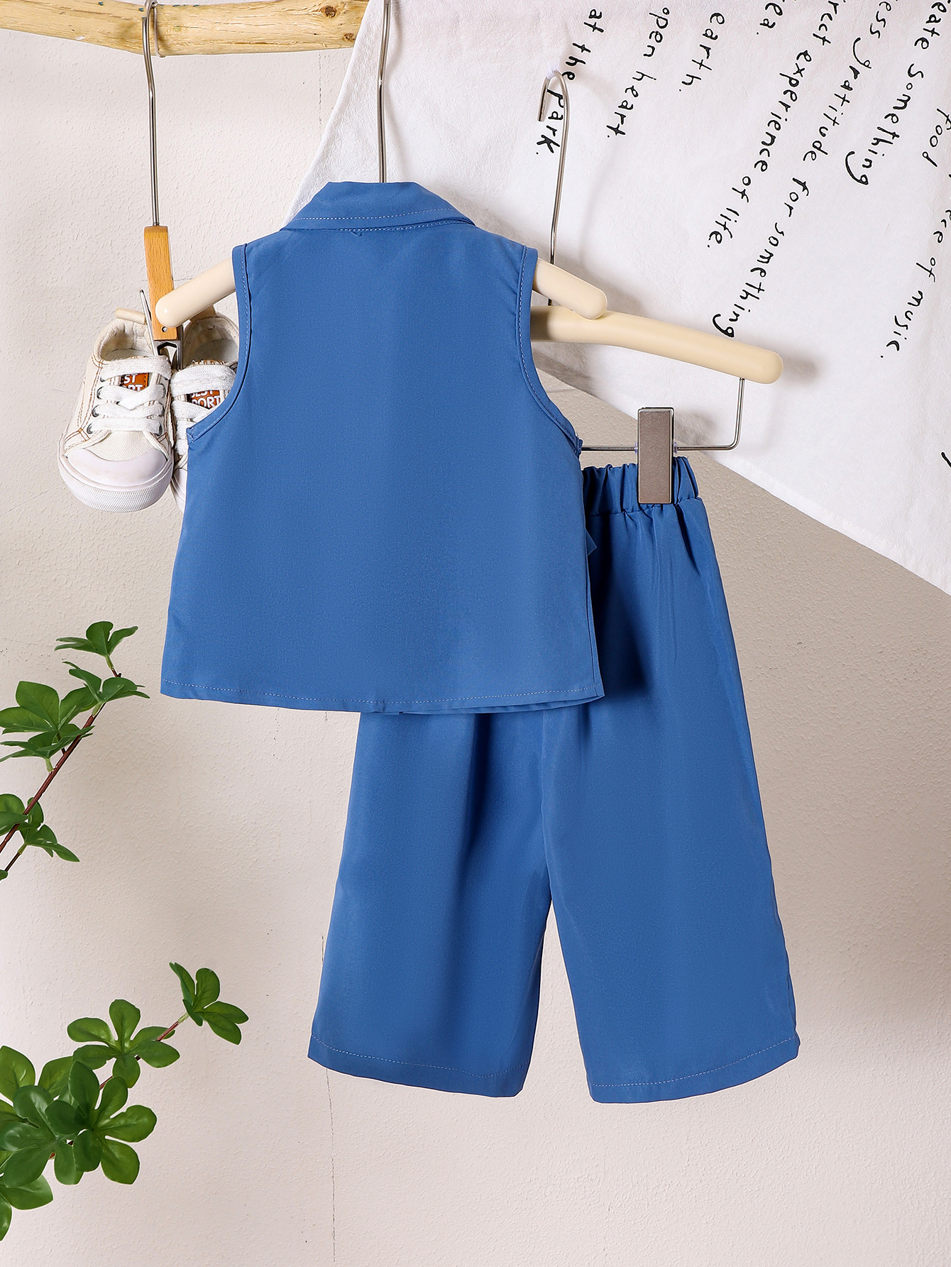 국경 간 유럽과 미국 여름 뜨거운 판매 기질 소녀 세트 어린이 옷깃 코르세이지 민소매 탑 팬츠 신제품