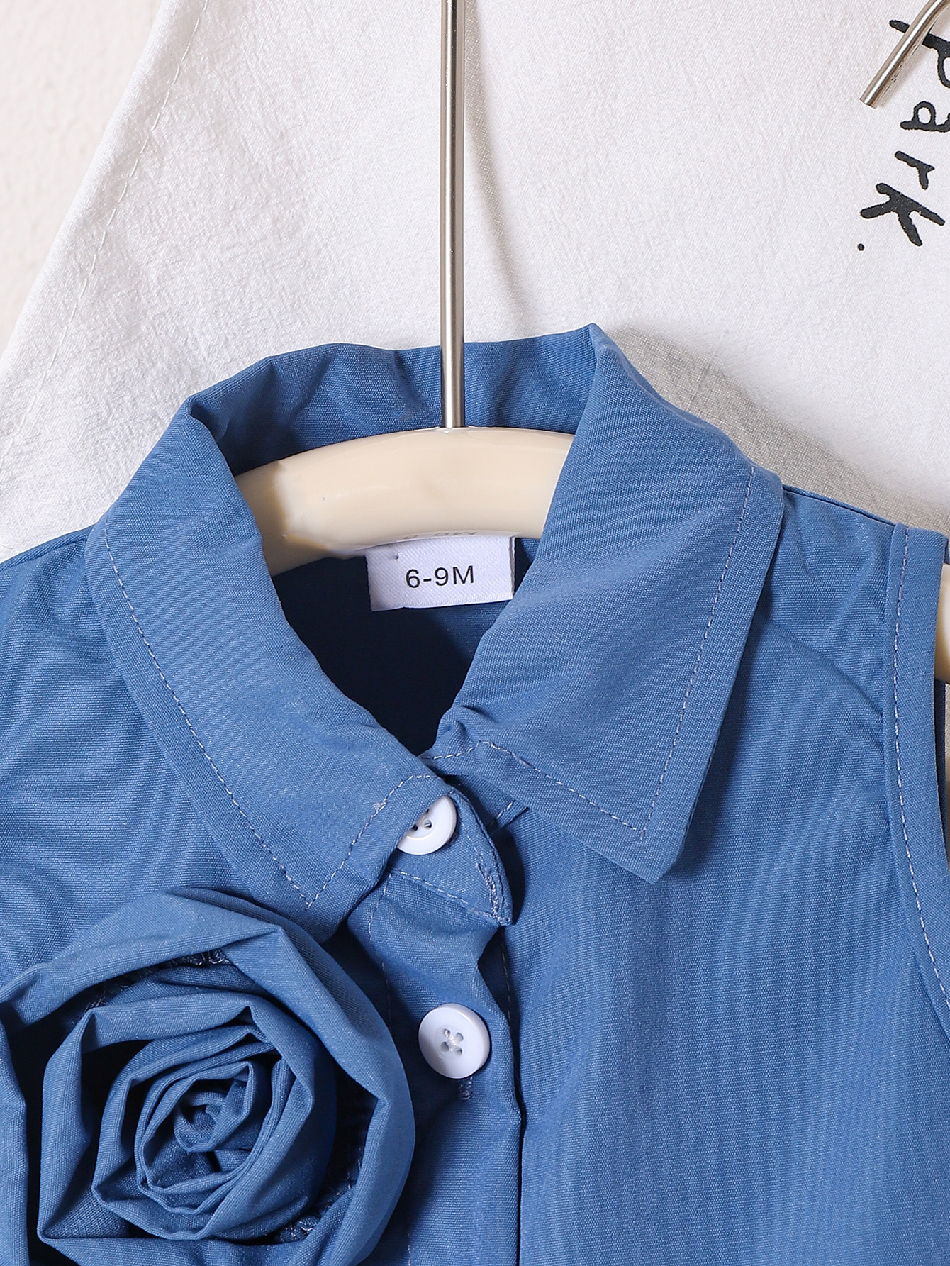 국경 간 유럽과 미국 여름 뜨거운 판매 기질 소녀 세트 어린이 옷깃 코르세이지 민소매 탑 팬츠 신제품스토어 가기