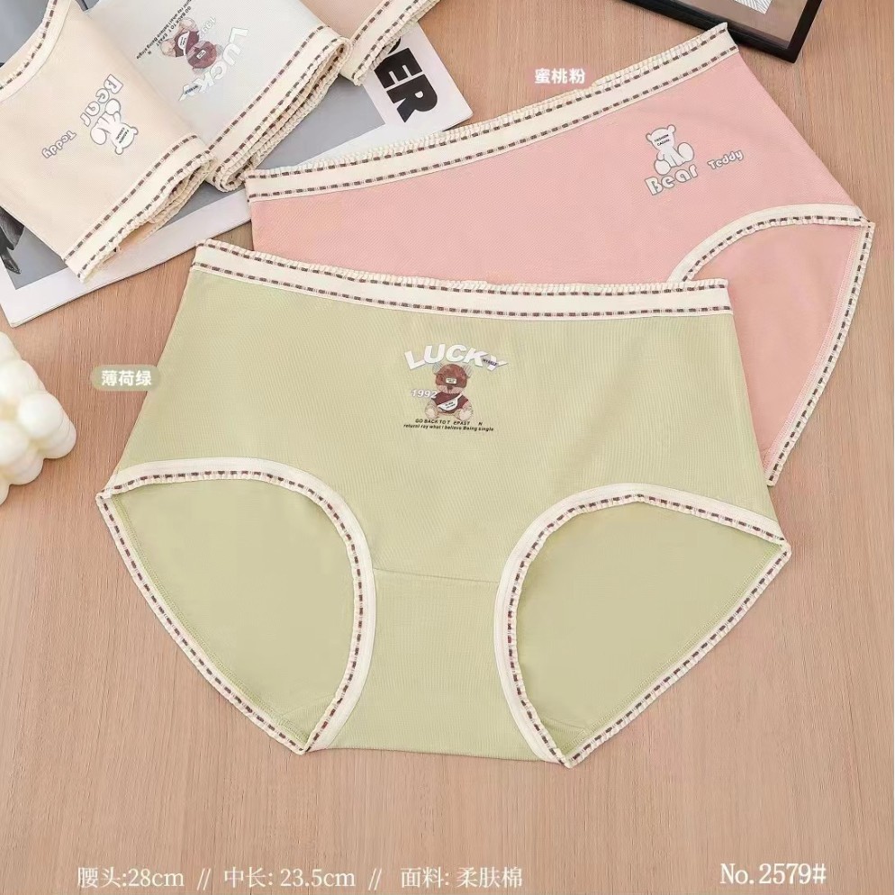 Manmeifang 2579 소녀 곰 프린트 속옷 부드러운 면 문자 프린트 속옷 통기성 팬티