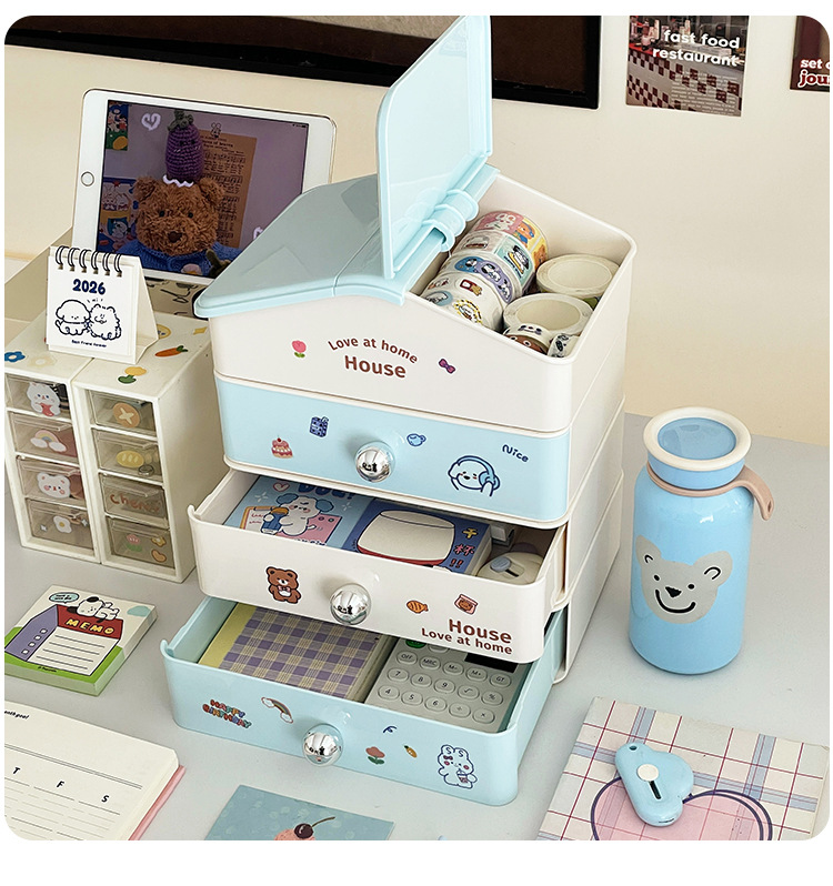 학생 데스크탑 보관함 책상 대용량 투명 펜 홀더 보관함 책상 서랍 형 핸드북 보관함