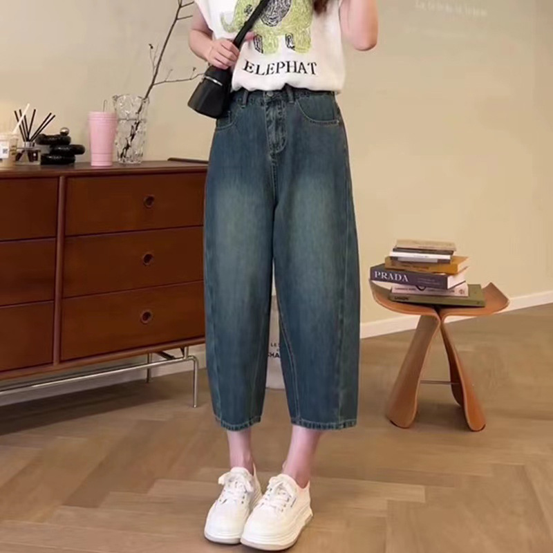 플러스 사이즈 8 점 스트레치 Harlan 청바지 여성의 여름 얇은 지방 느슨한 높은 허리 슬리밍 스트레이트 레그 와이드 레그 팬츠스토어 가기