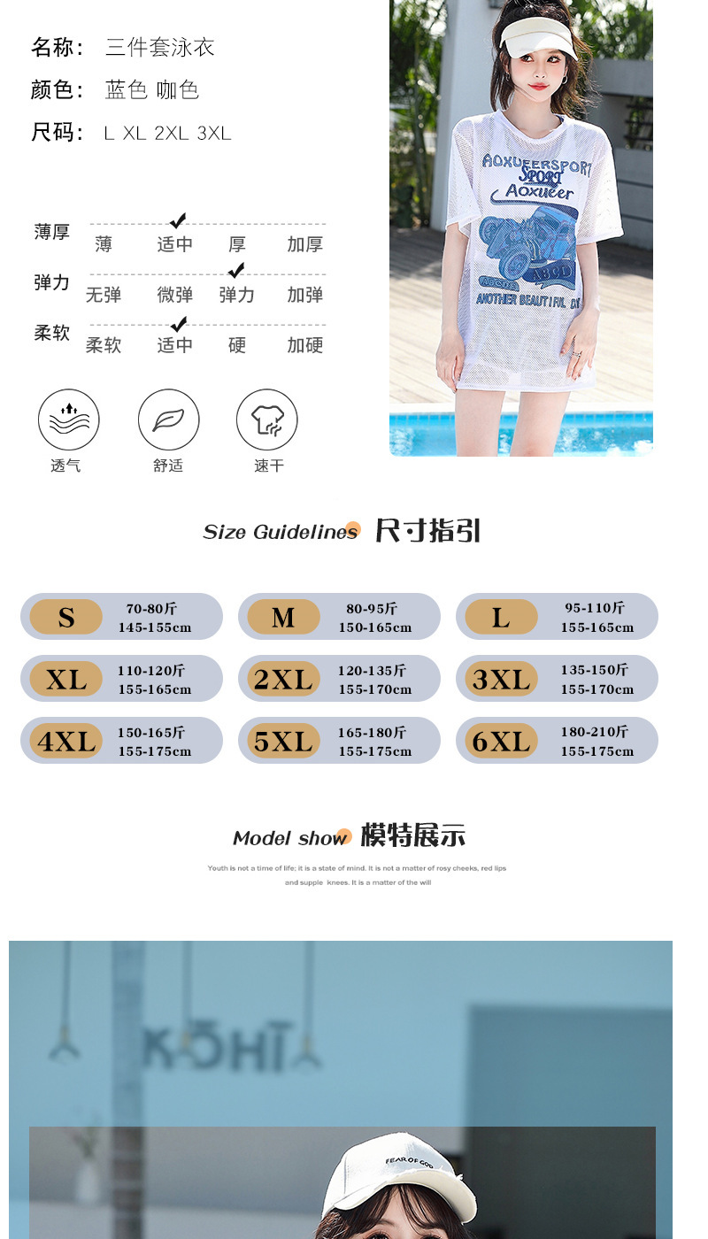 여름 핫셀링 여성 스포츠 스타일 수영복 스플릿 복서 보수적인 3피스 커버업으로 살을 커버하고 슬림하게 보이는 플러스 사이즈 수영복스토어 가기