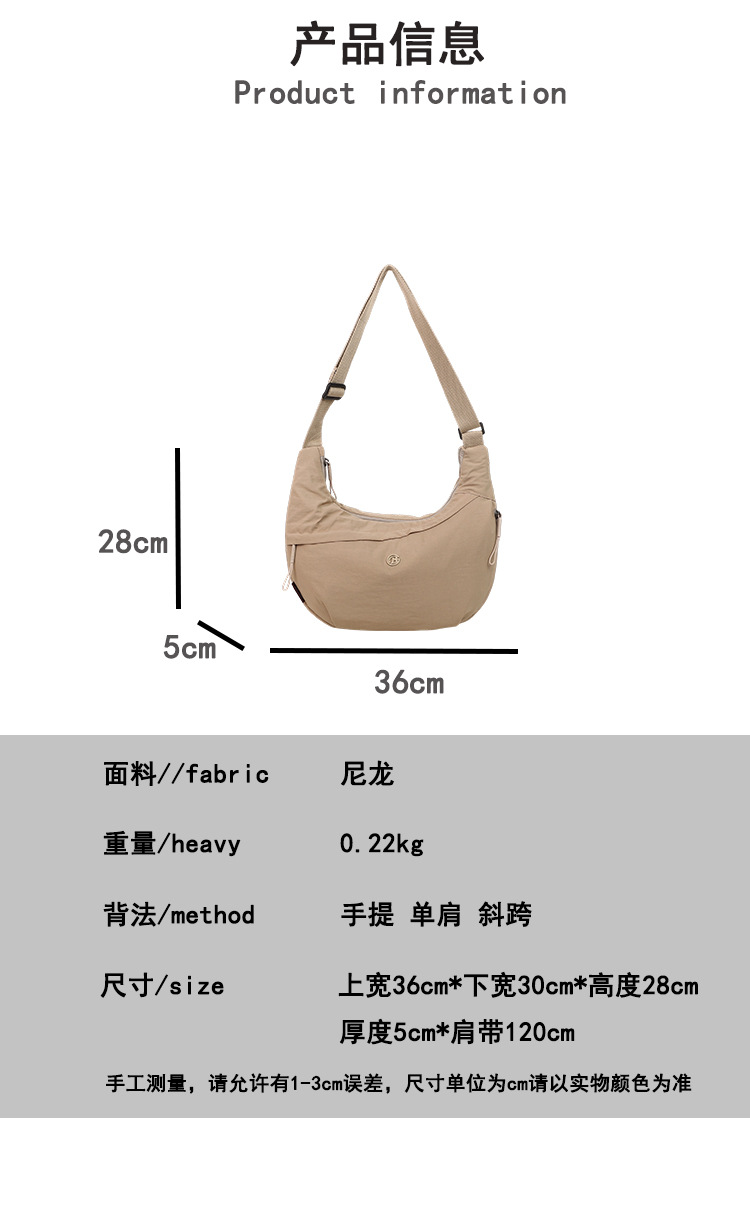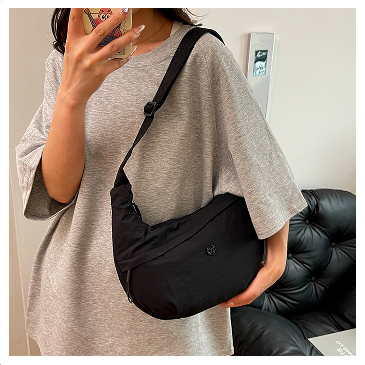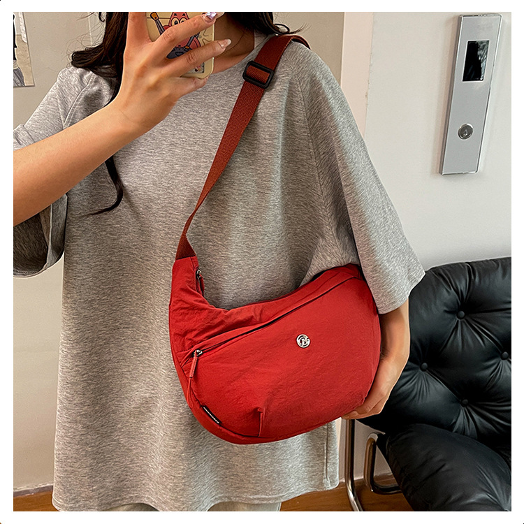 간단한 패션 방수 나일론 가방 여성의 2025 새로운 빛 편안한 대형 만두 가방 모든 경기 어깨 크로스 바디 백