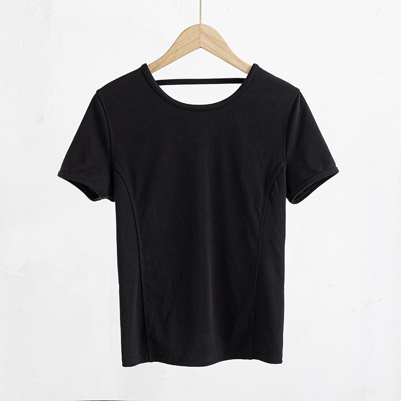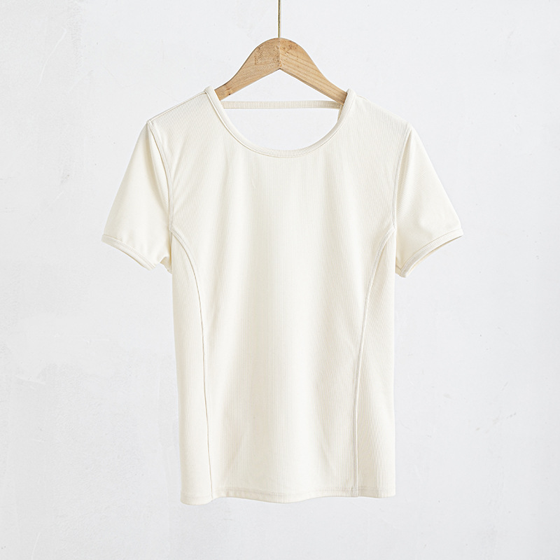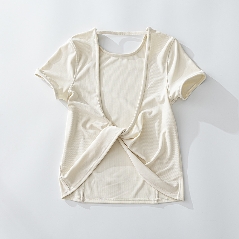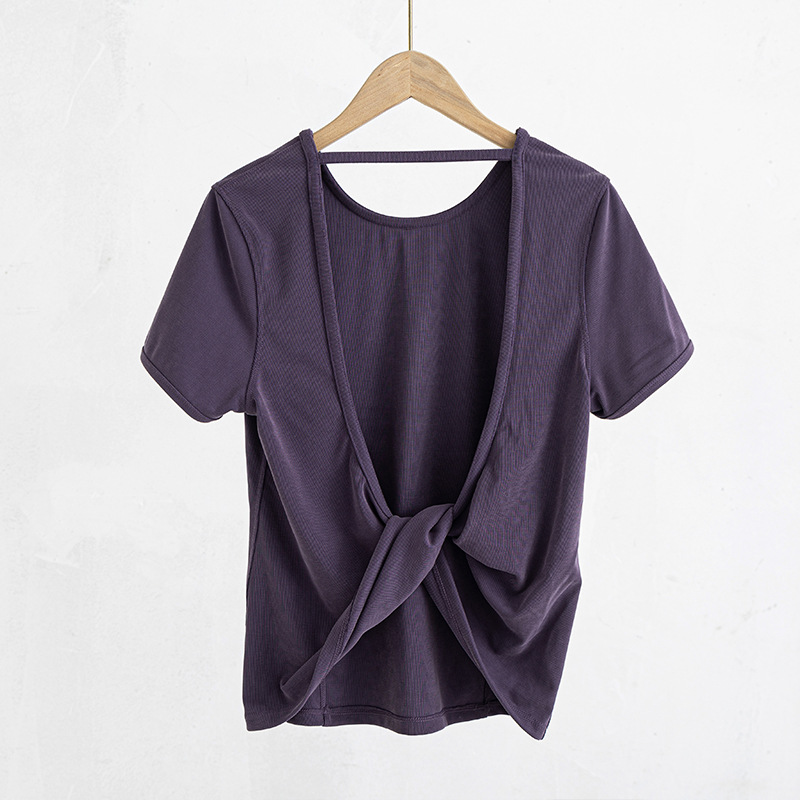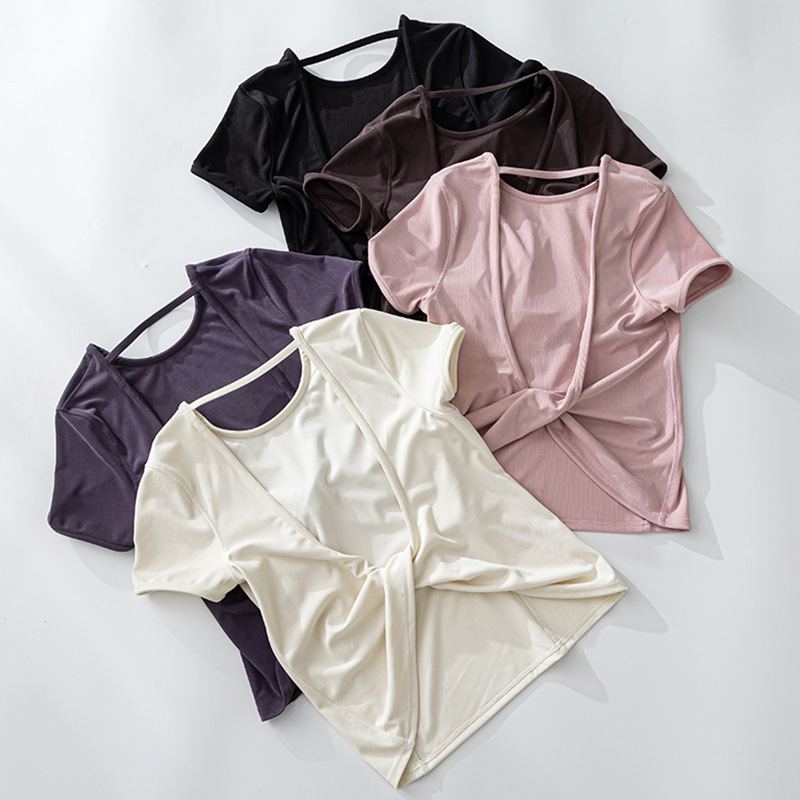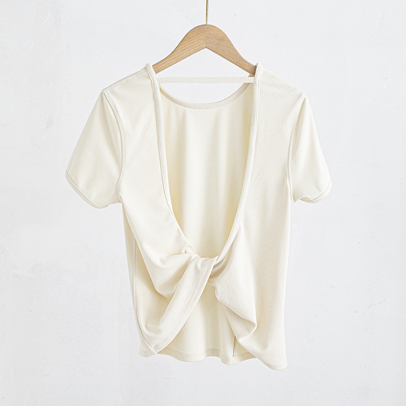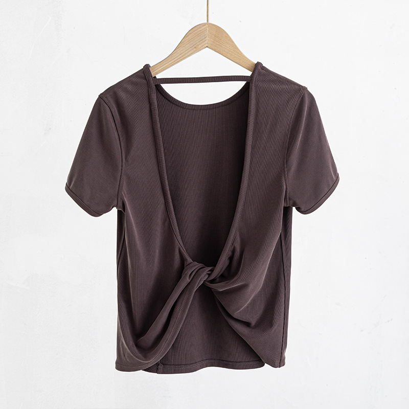 여름 캐주얼 올 매치 티셔츠 구리 암모니아 실크 스레드 매듭 백리스 블라우스 반팔 필라테스 탑 요가 옷