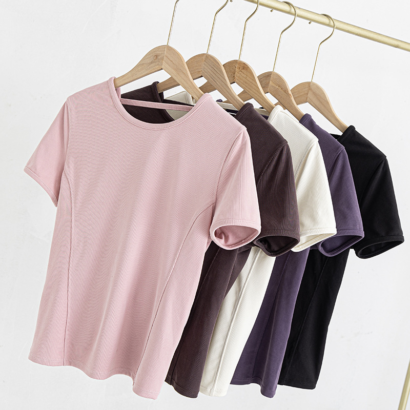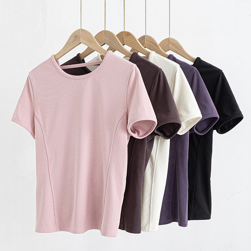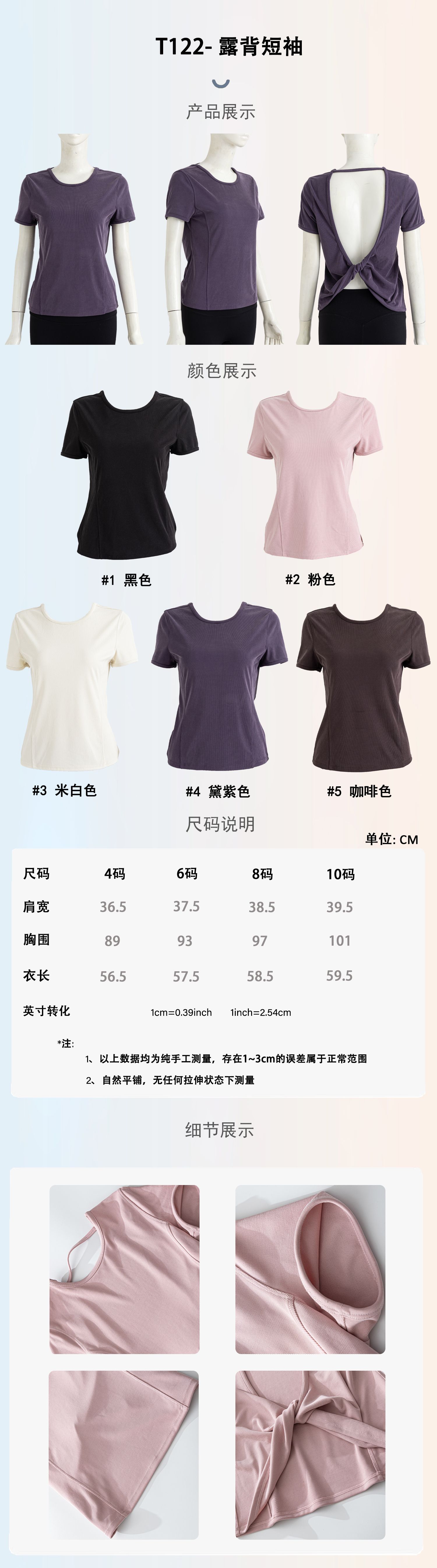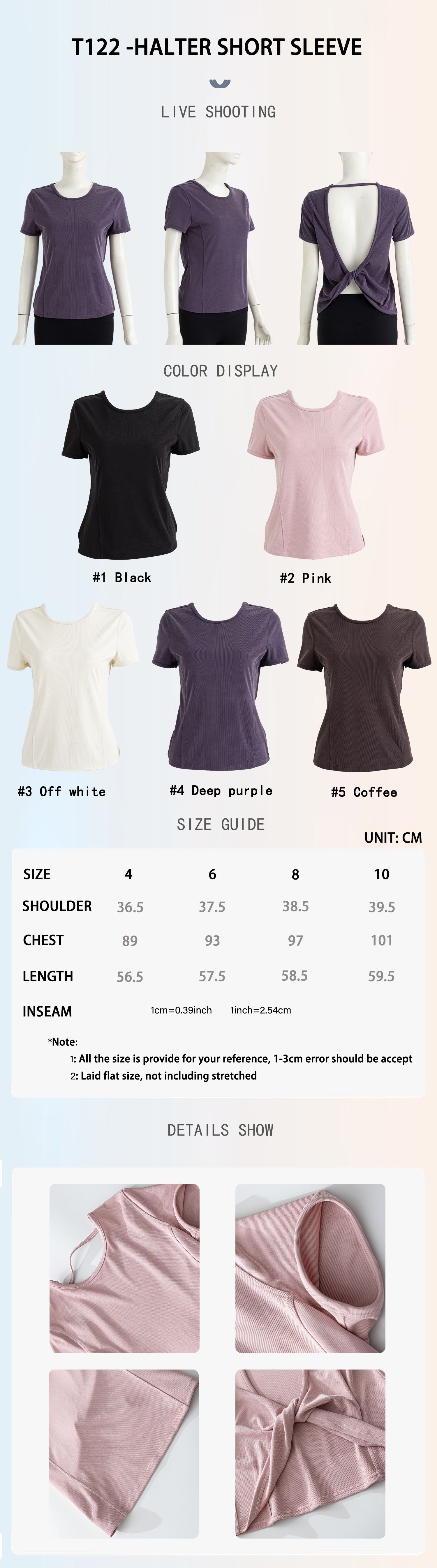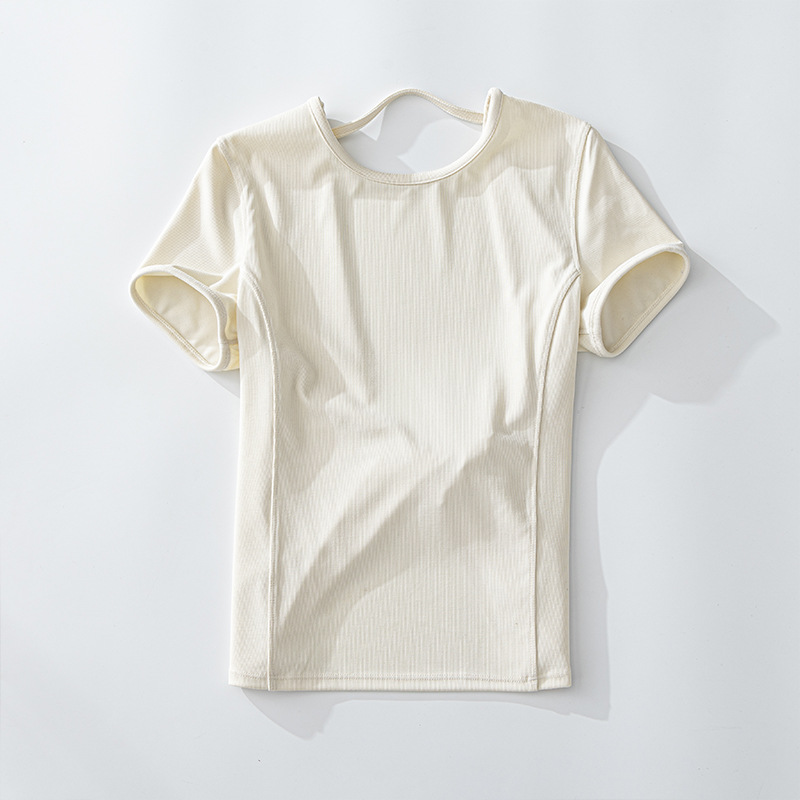 여름 캐주얼 올 매치 티셔츠 구리 암모니아 실크 스레드 매듭 백리스 블라우스 반팔 필라테스 탑 요가 옷