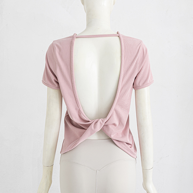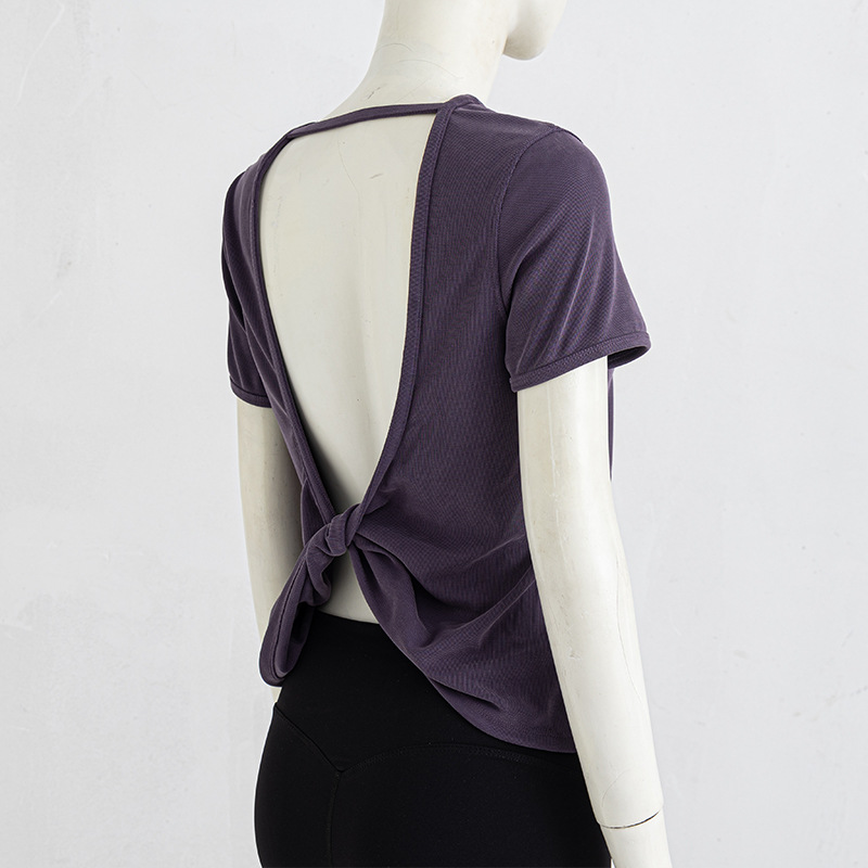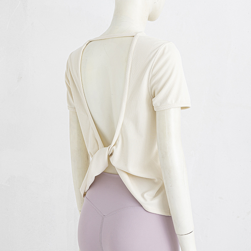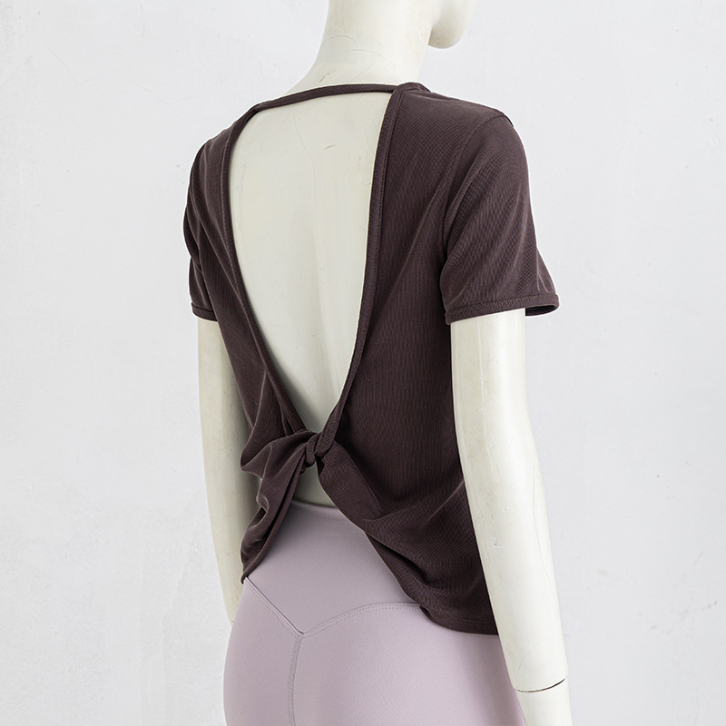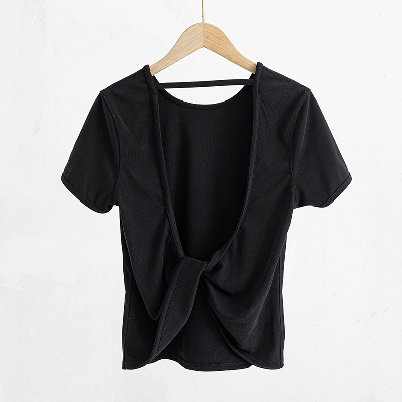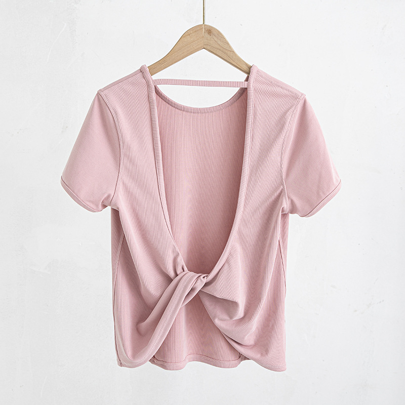 여름 캐주얼 올 매치 티셔츠 구리 암모니아 실크 스레드 매듭 백리스 블라우스 반팔 필라테스 탑 요가 옷스토어 가기