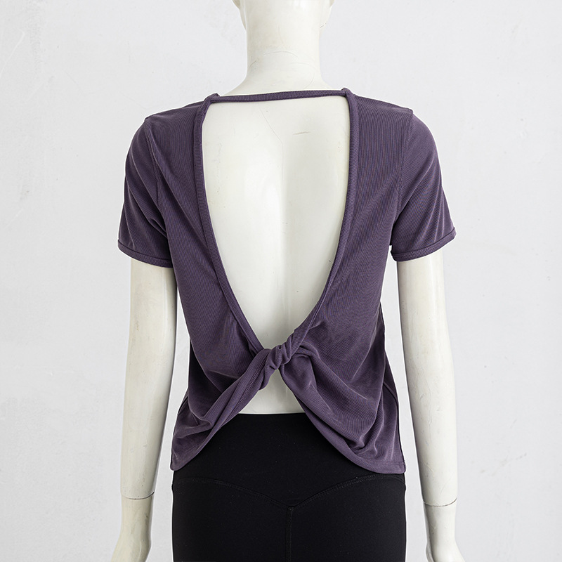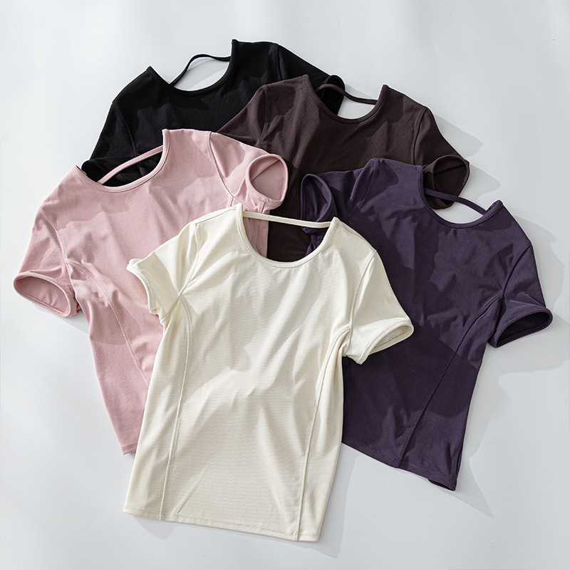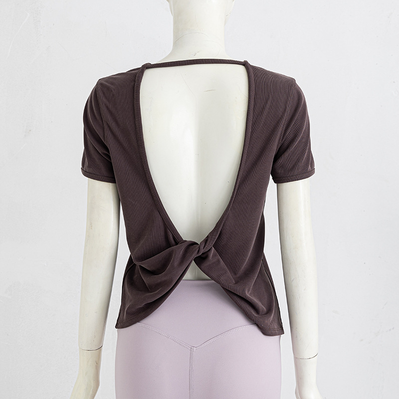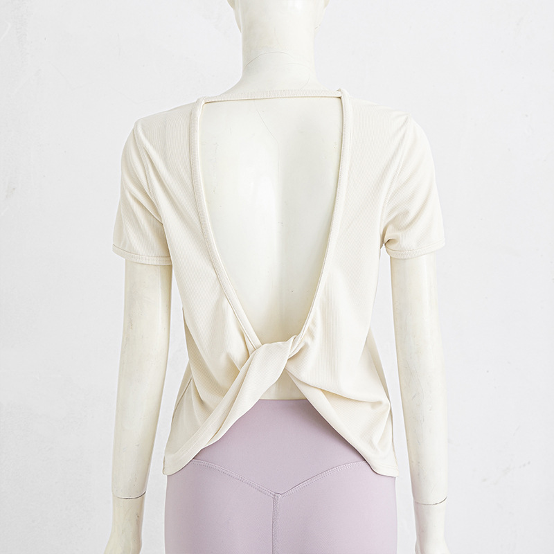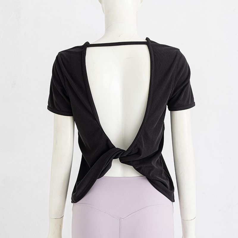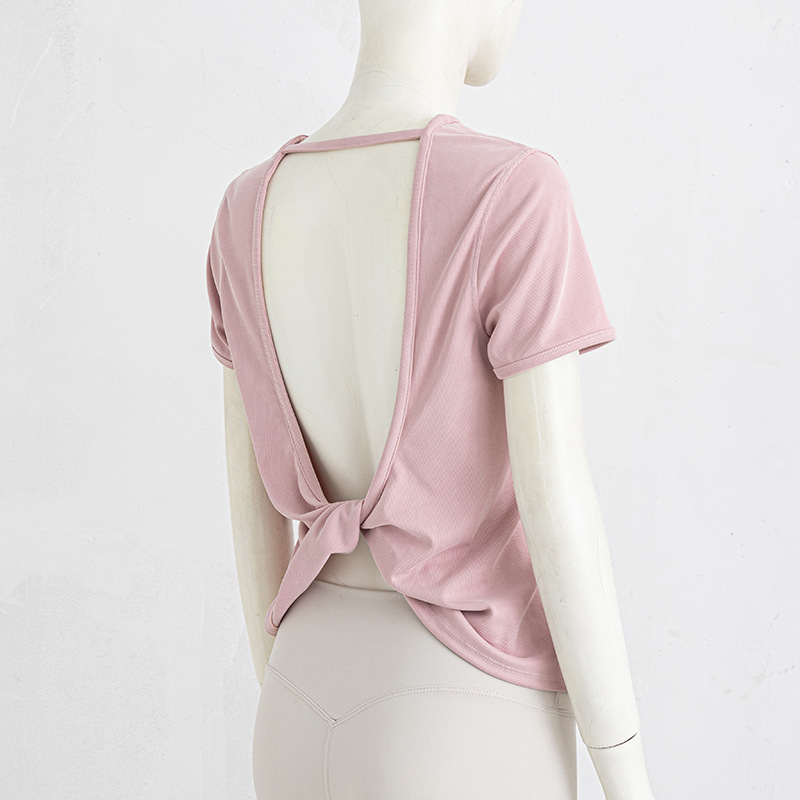 여름 캐주얼 올 매치 티셔츠 구리 암모니아 실크 스레드 매듭 백리스 블라우스 반팔 필라테스 탑 요가 옷스토어 가기
