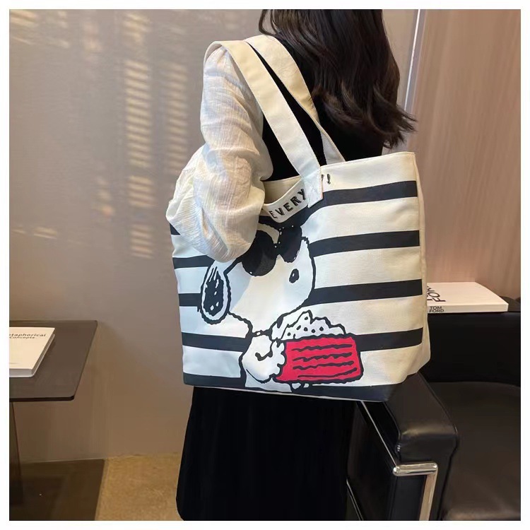 여성용 대용량 토트백 신상 한국 스타일 레이지 스타일 캔버스백 스누피 심플 다용도 캐주얼 숄더백