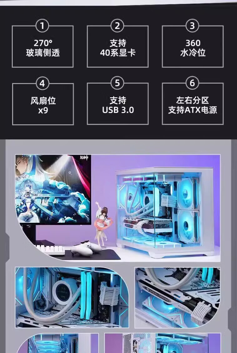 Xianma Xiaoyinghai 바다 전망 룸 섀시 데스크탑 MATX360 수냉식 공냉식 기둥 없는 컴퓨터 메인 섀시스토어 가기