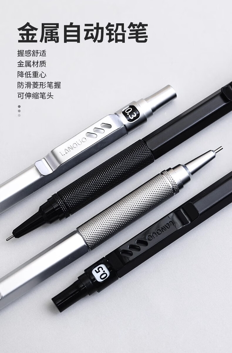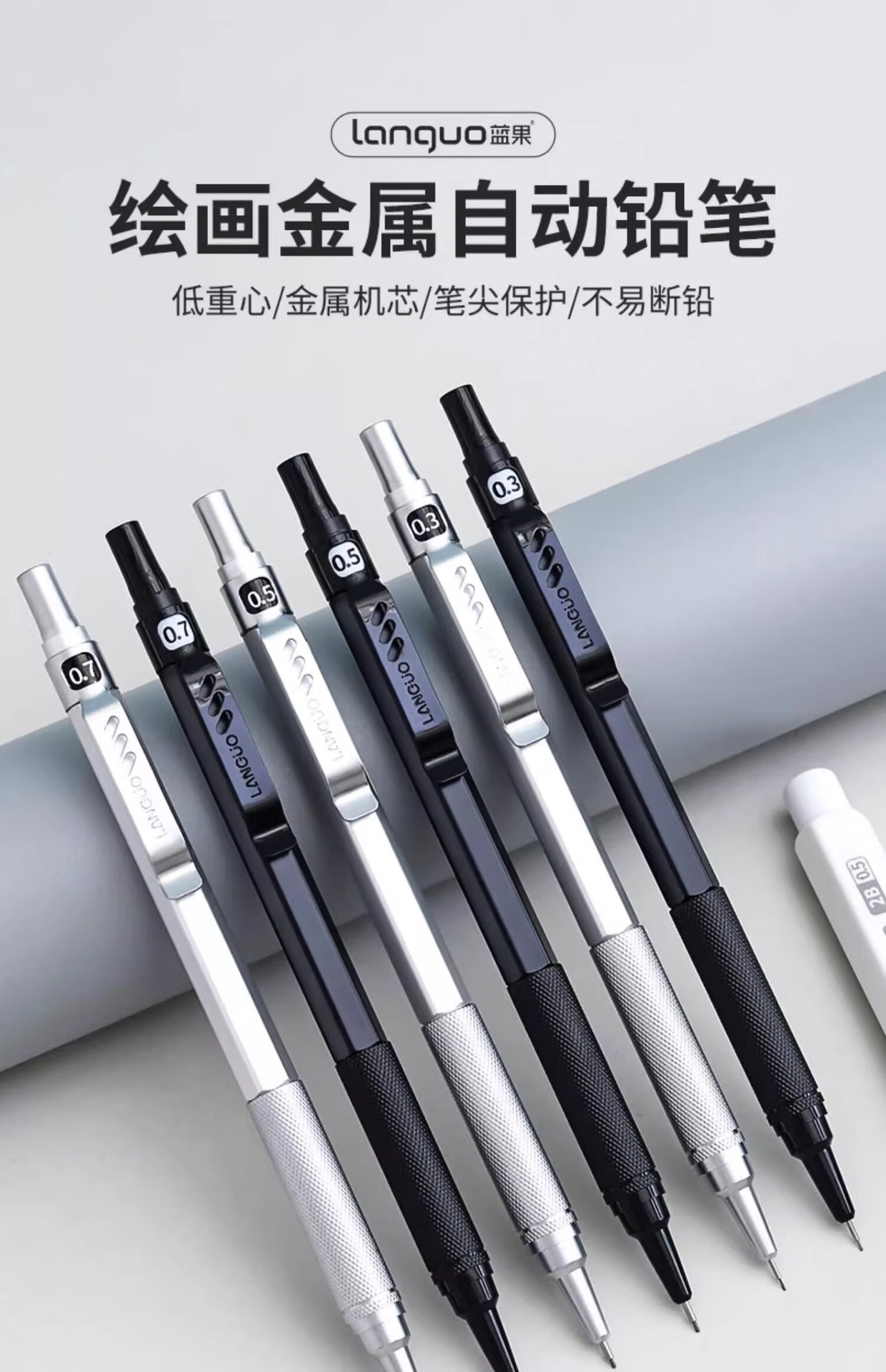 Languo 71365 학생 그림 스케치 자동 연필 금속 펜 클립 무거운 느낌 깨지기 쉽지 않은 코어 특수 연필스토어 가기