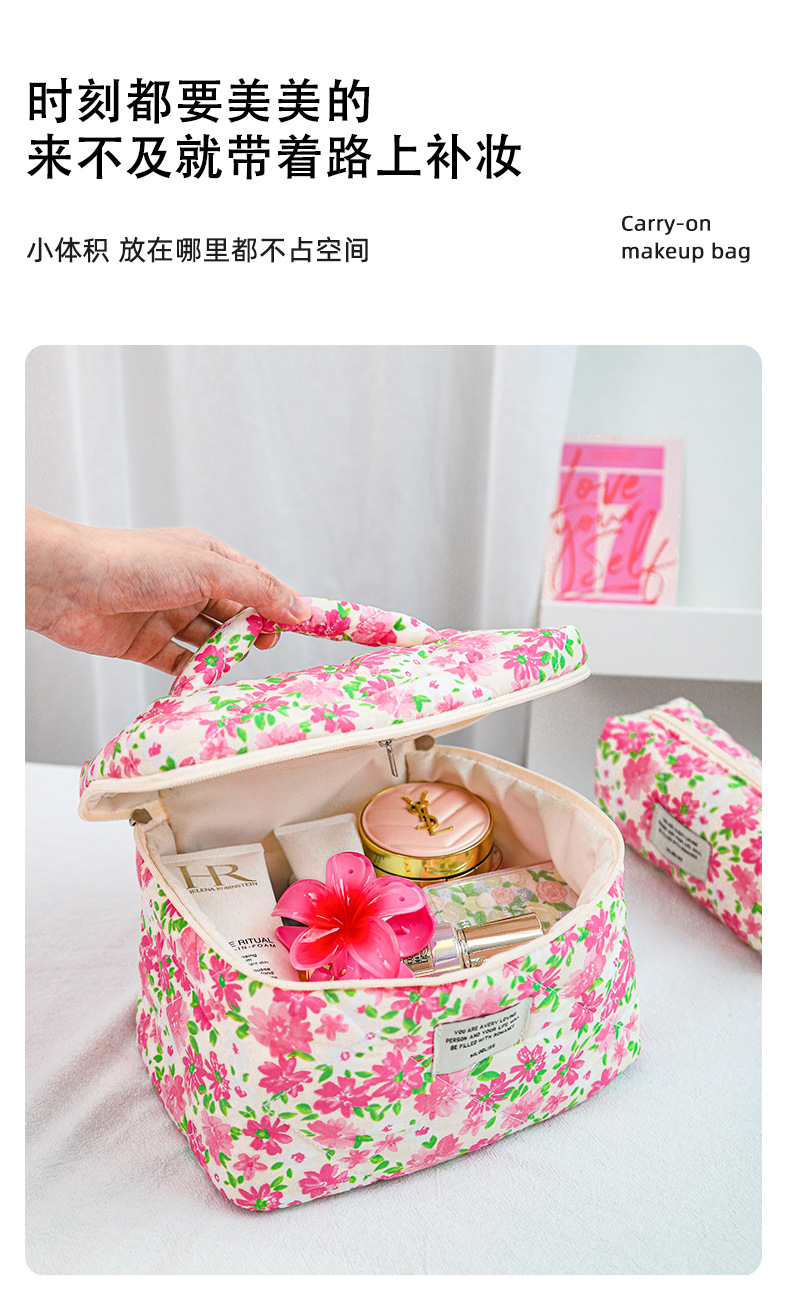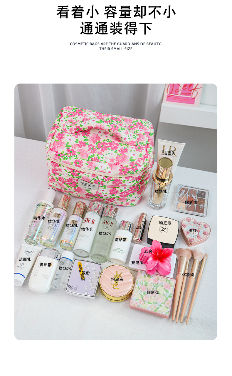 여름 새로운 기능 여행 화장품 가방 대용량 퀼트 스킨 케어 제품 보관 가방 꽃 휴대용 보관 가방스토어 가기