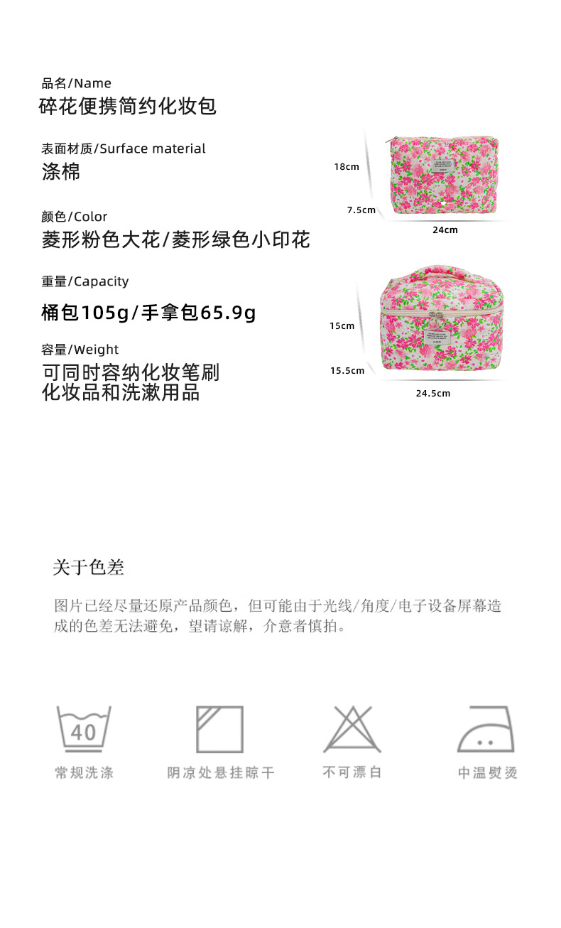 여름 새로운 기능 여행 화장품 가방 대용량 퀼트 스킨 케어 제품 보관 가방 꽃 휴대용 보관 가방